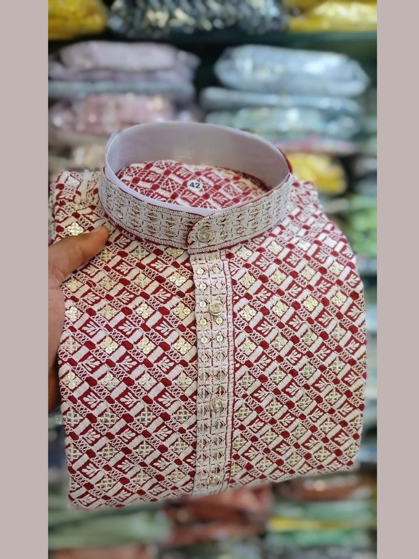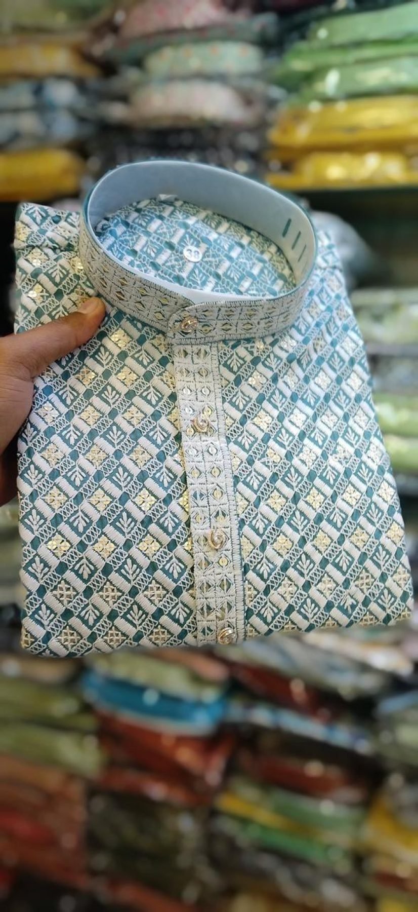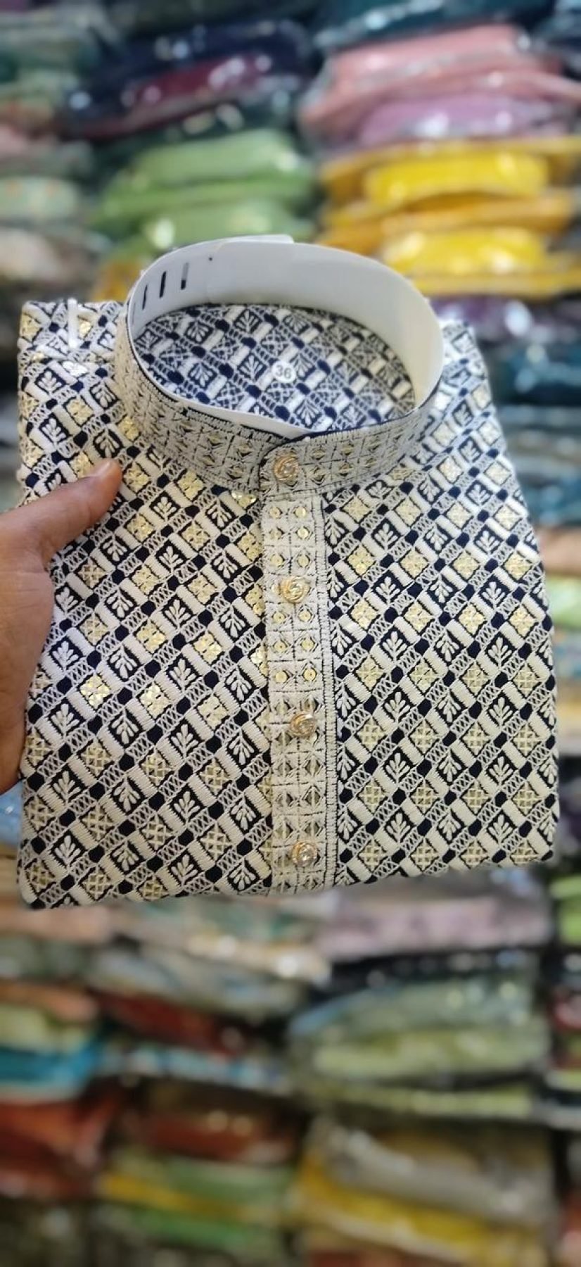 Premium Designer Kurta Pyjama Set for Men Heavy Embroidery Work with Self Lehariya Sequence Work Ready to Wear at Wholesale Price