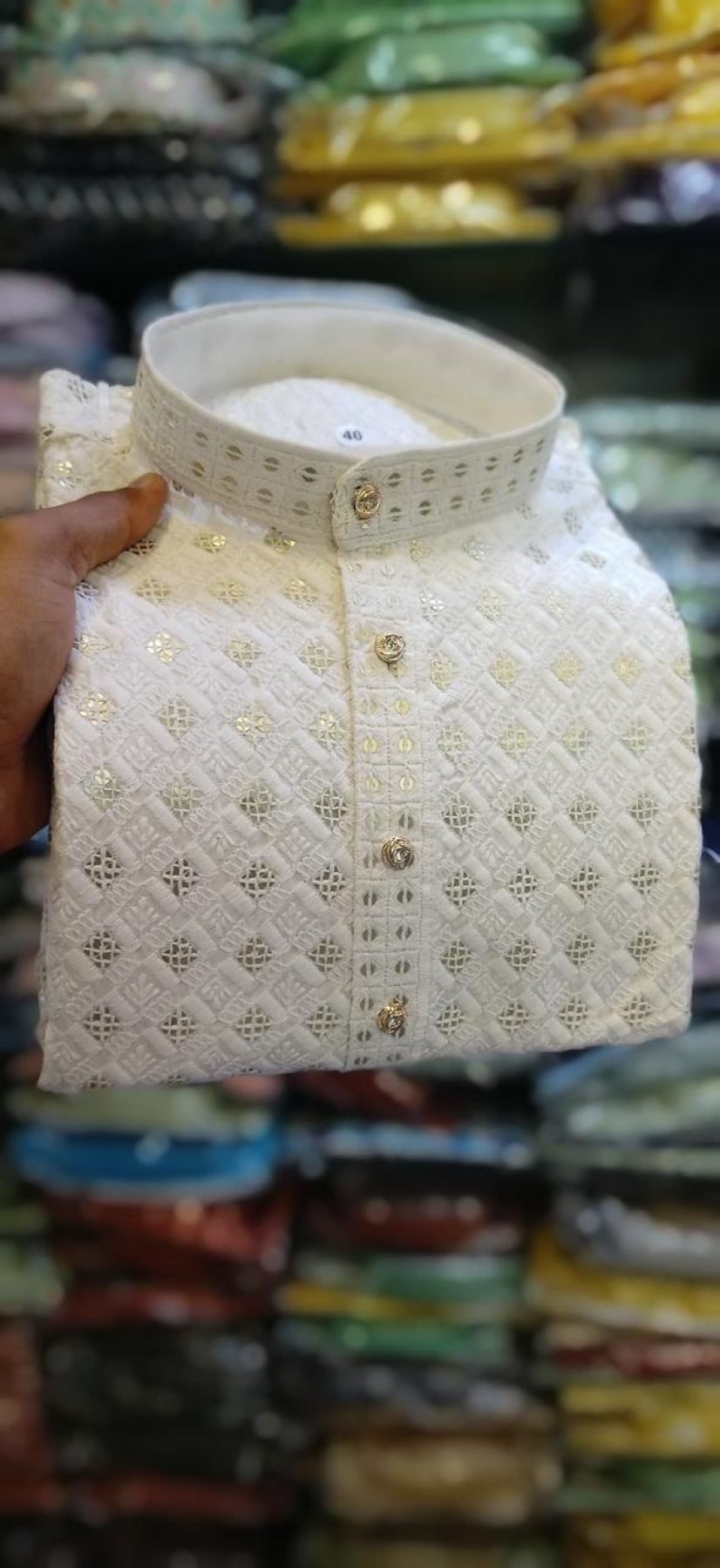 Upgrade your ethnic wardrobe with this stylish Kurta Pyjama Set made from breathable Reyon Viscose fabric. Designed with elegant white thread and sequin work, it's a perfect blend of comfort and festive flair. Available in regular sizes 36 to 44 with 4-inch extra margin for tailoring.