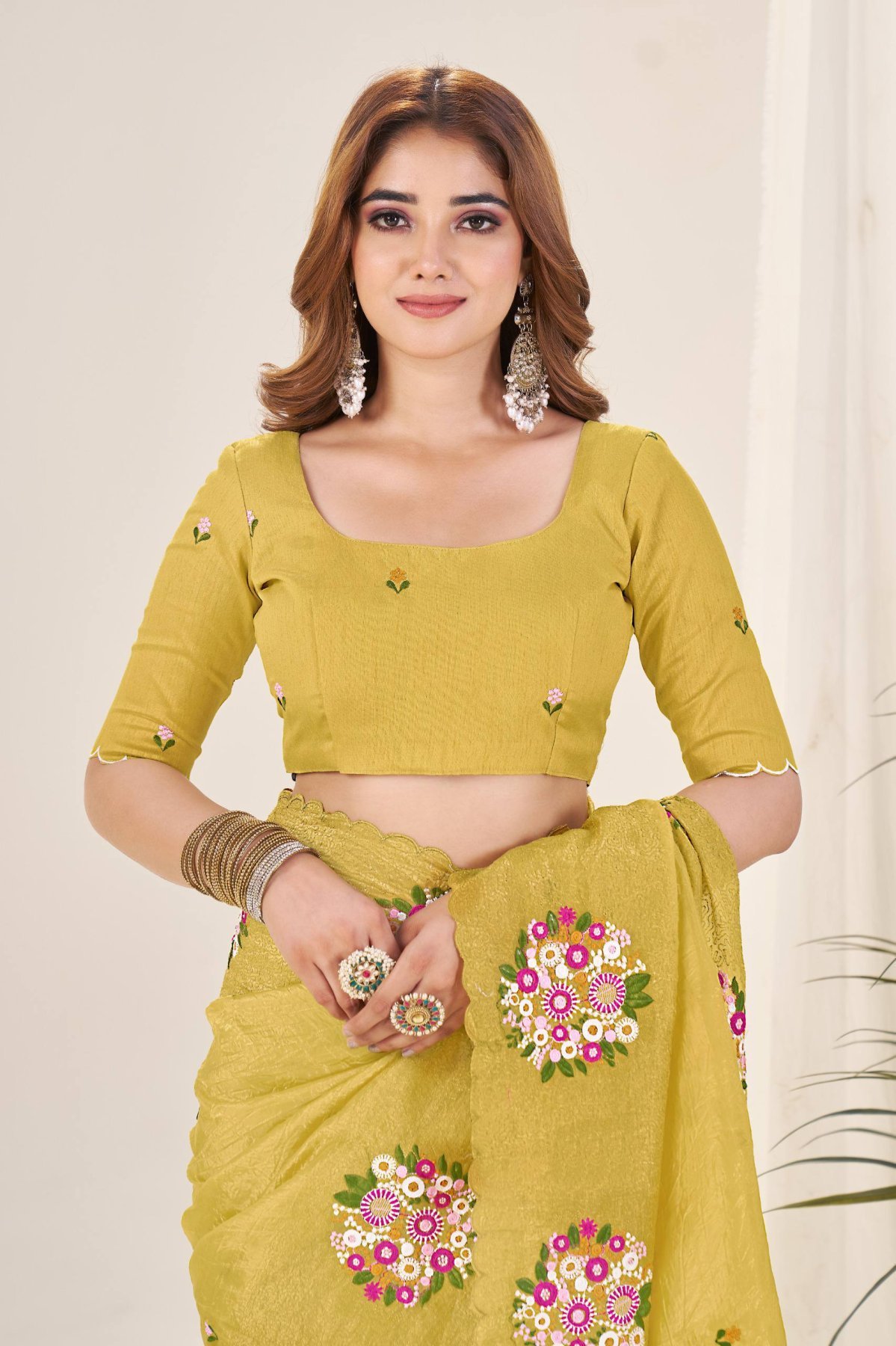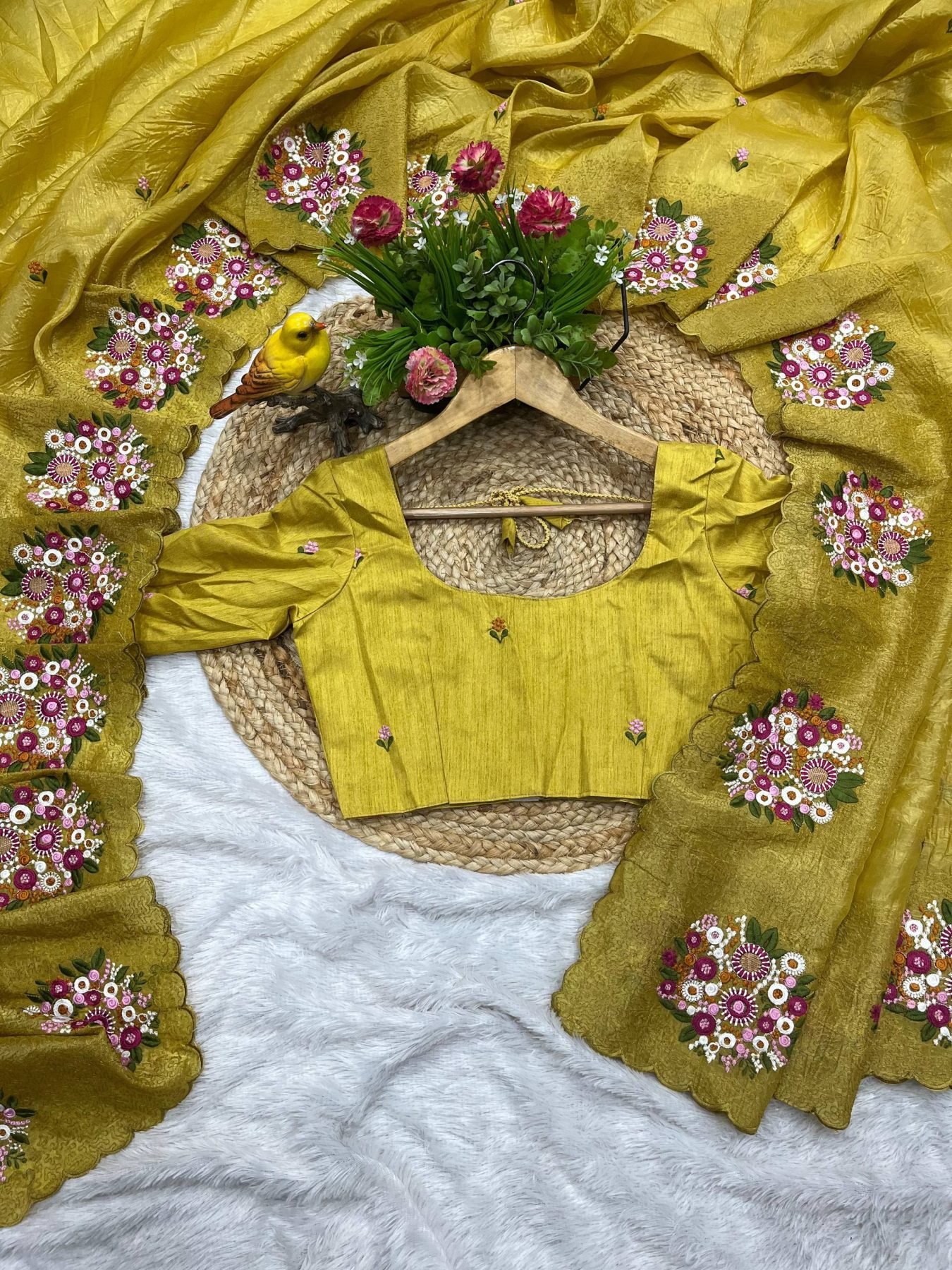 Premium Mustard Yellow Gold Crush Saree with Diamond Silk Blouse
