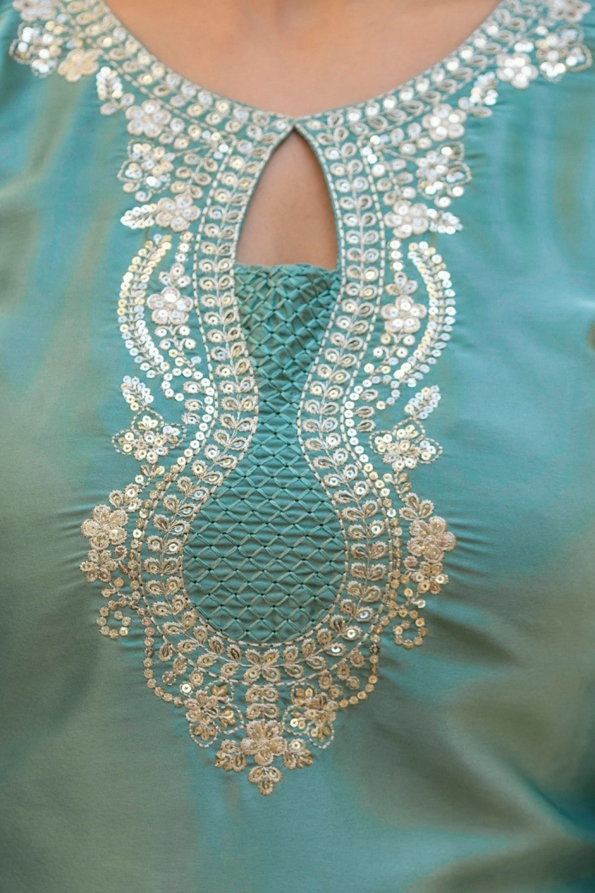 Premium Pista Elegant Embroidered Kurti Set for Festive and Party Wear