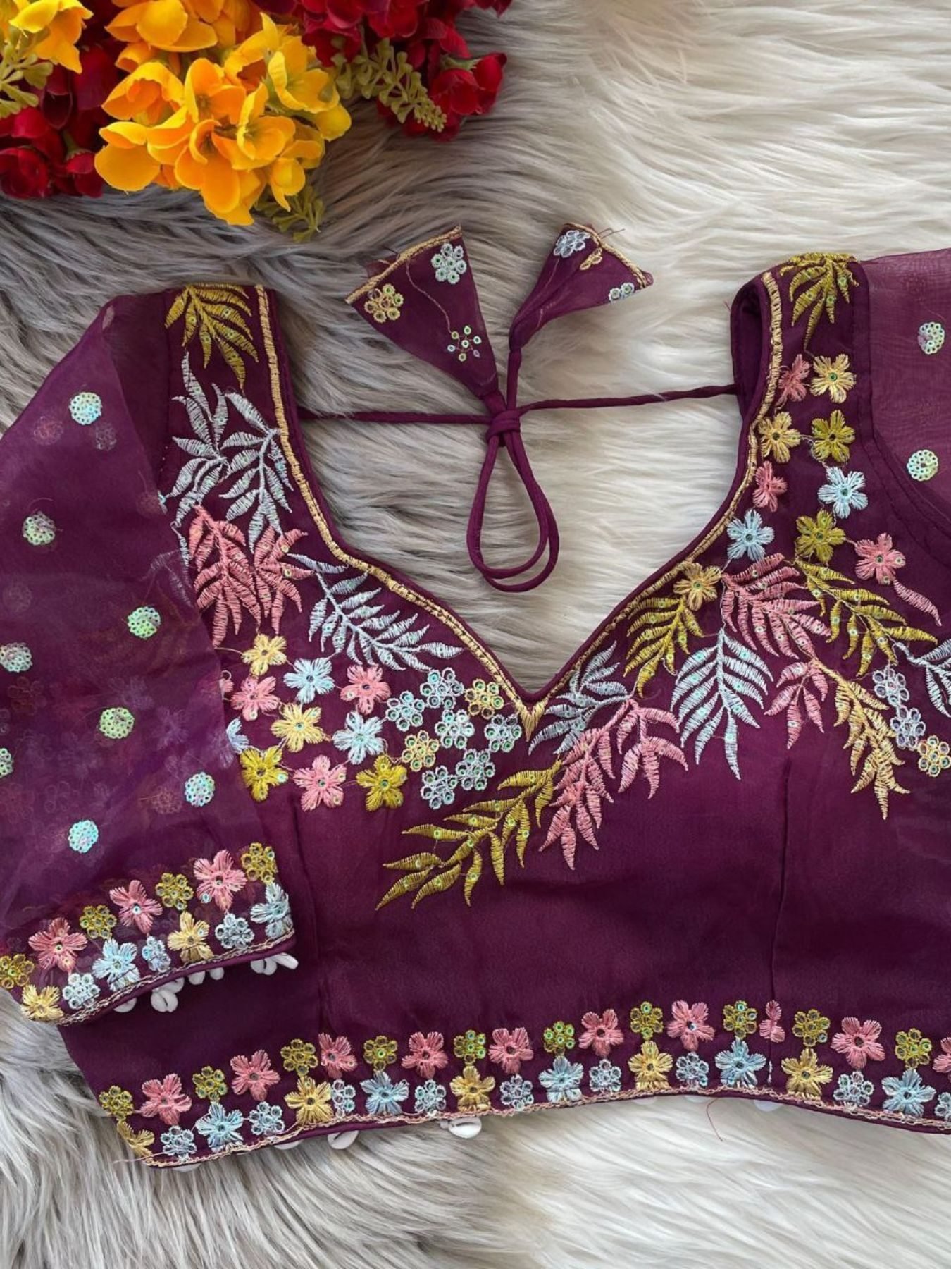 Premium Purple Soft Net Silk Blouse with Embroidery Work Readymade Party Wedding Wear at Wholesale Price