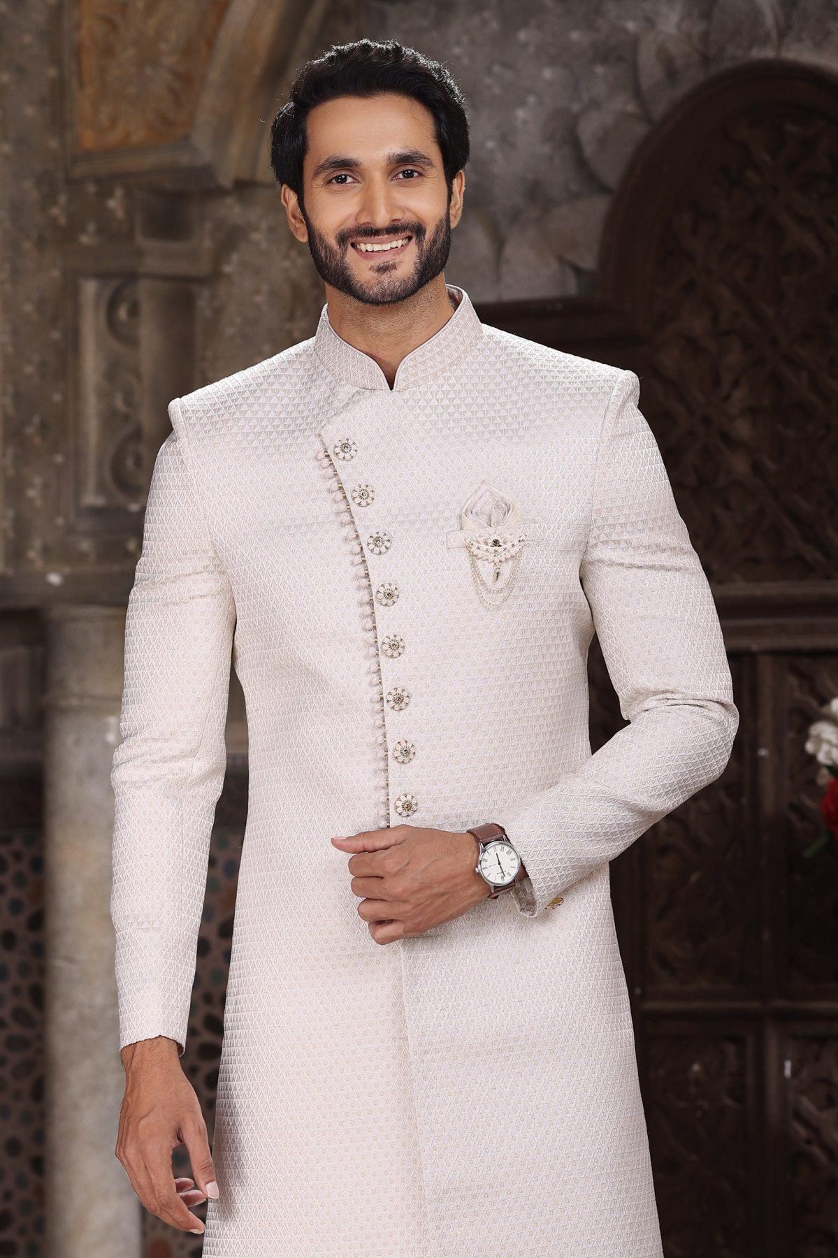 Premium White Banarasi Jacquard Indo Western Set for Men with Aligarhi Pant
