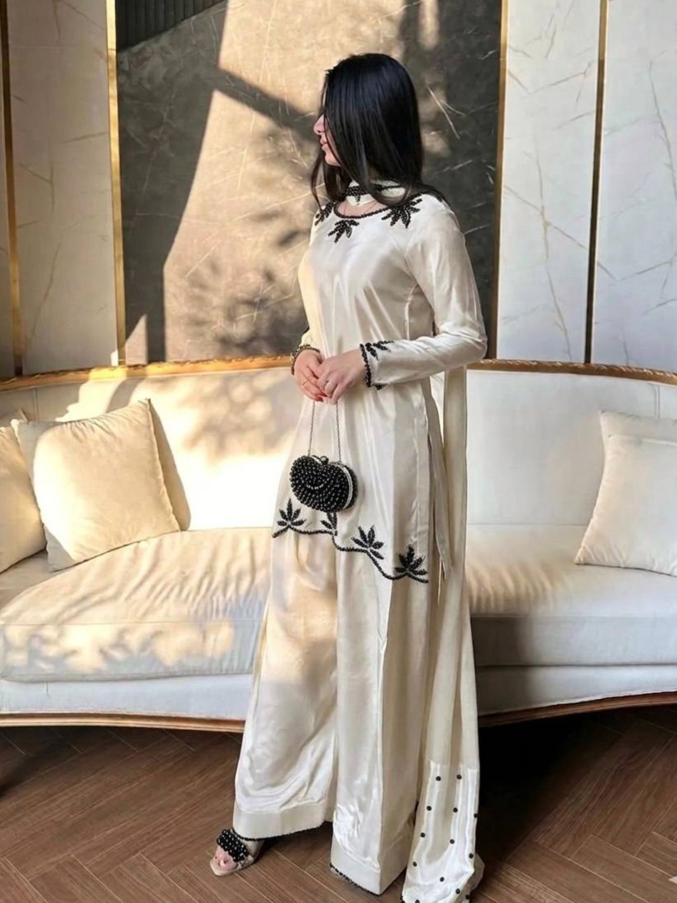 Premium White Embroidered Farshi Suit for Wedding and Festive Wear