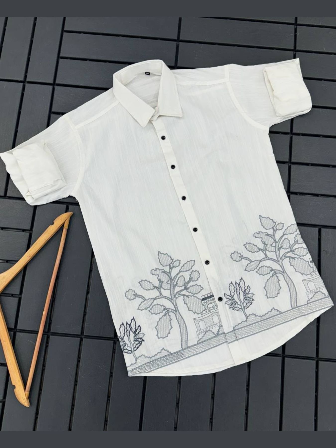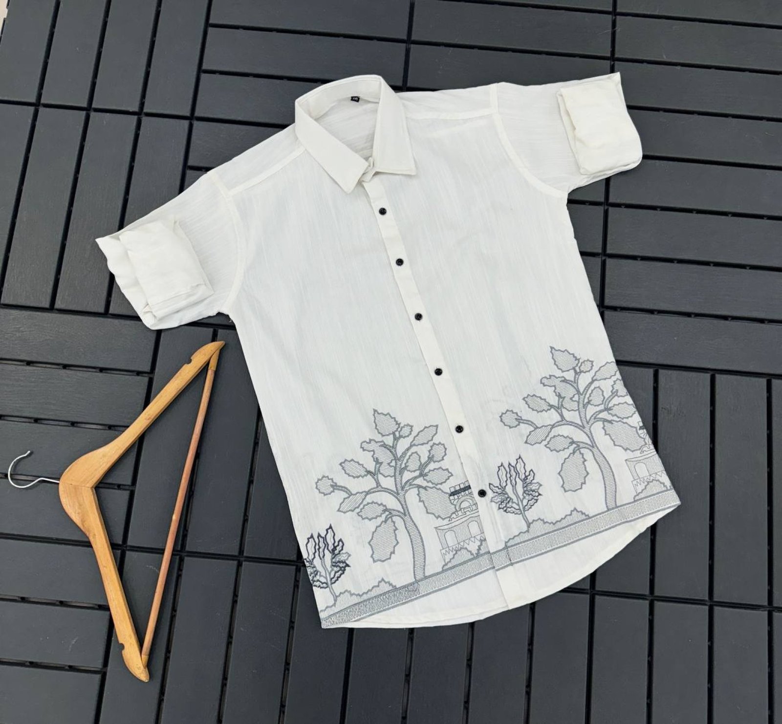 Stylish men’s shirt crafted in breathable linen fabric featuring elegant embroidery work. Designed with a comfortable fit and full sleeves, this shirt is perfect for casual wear, office wear, and everyday styling.