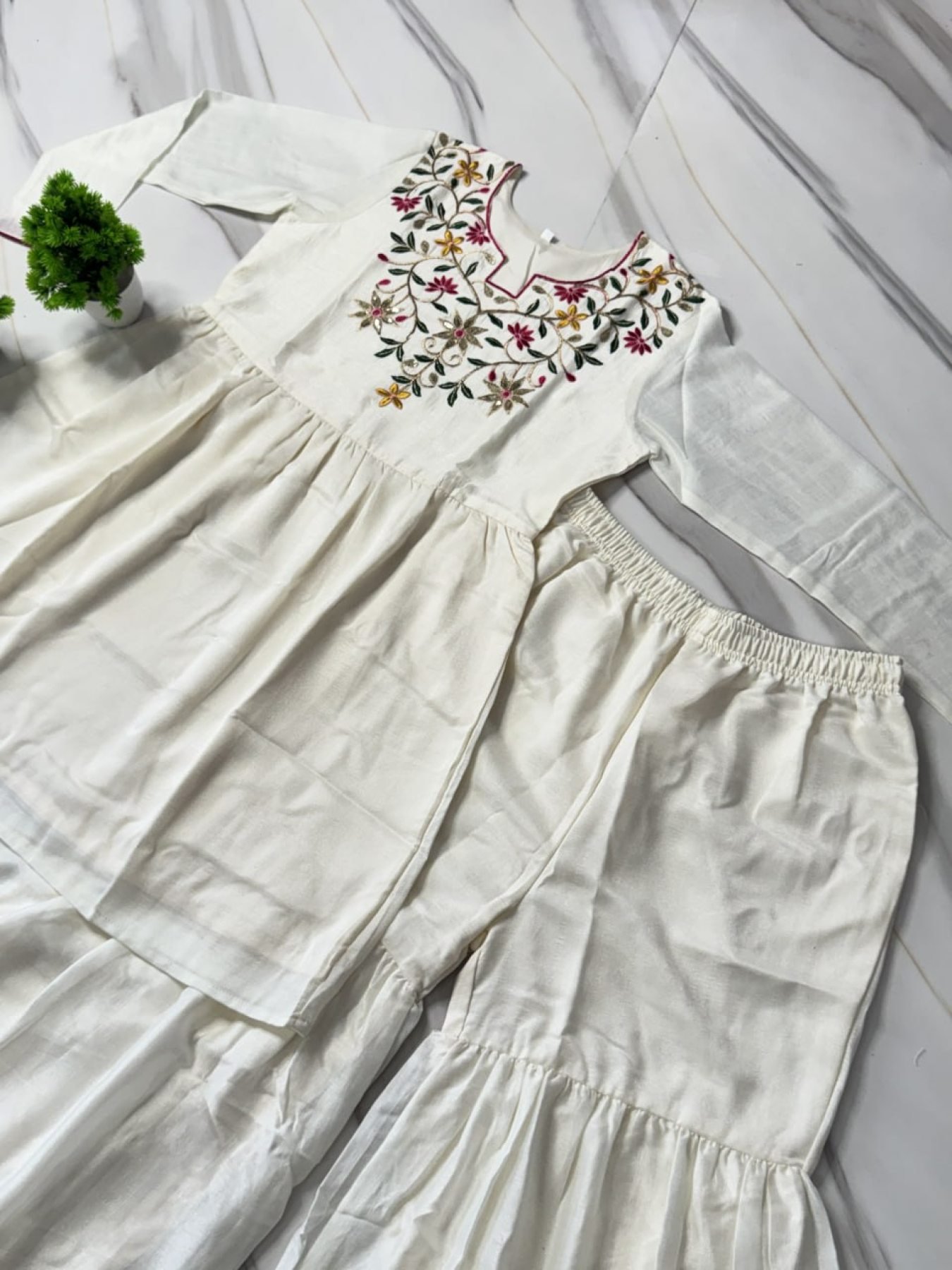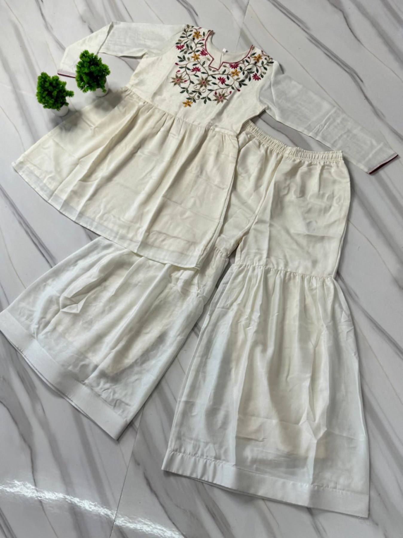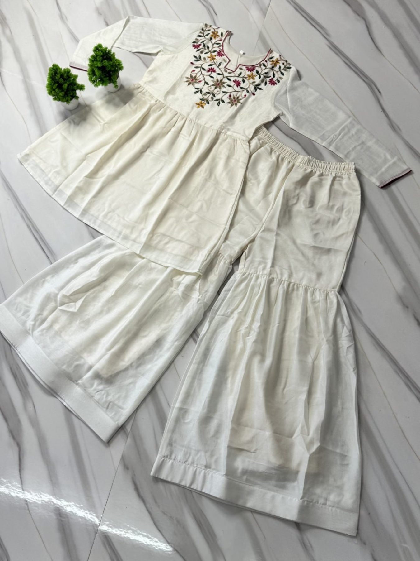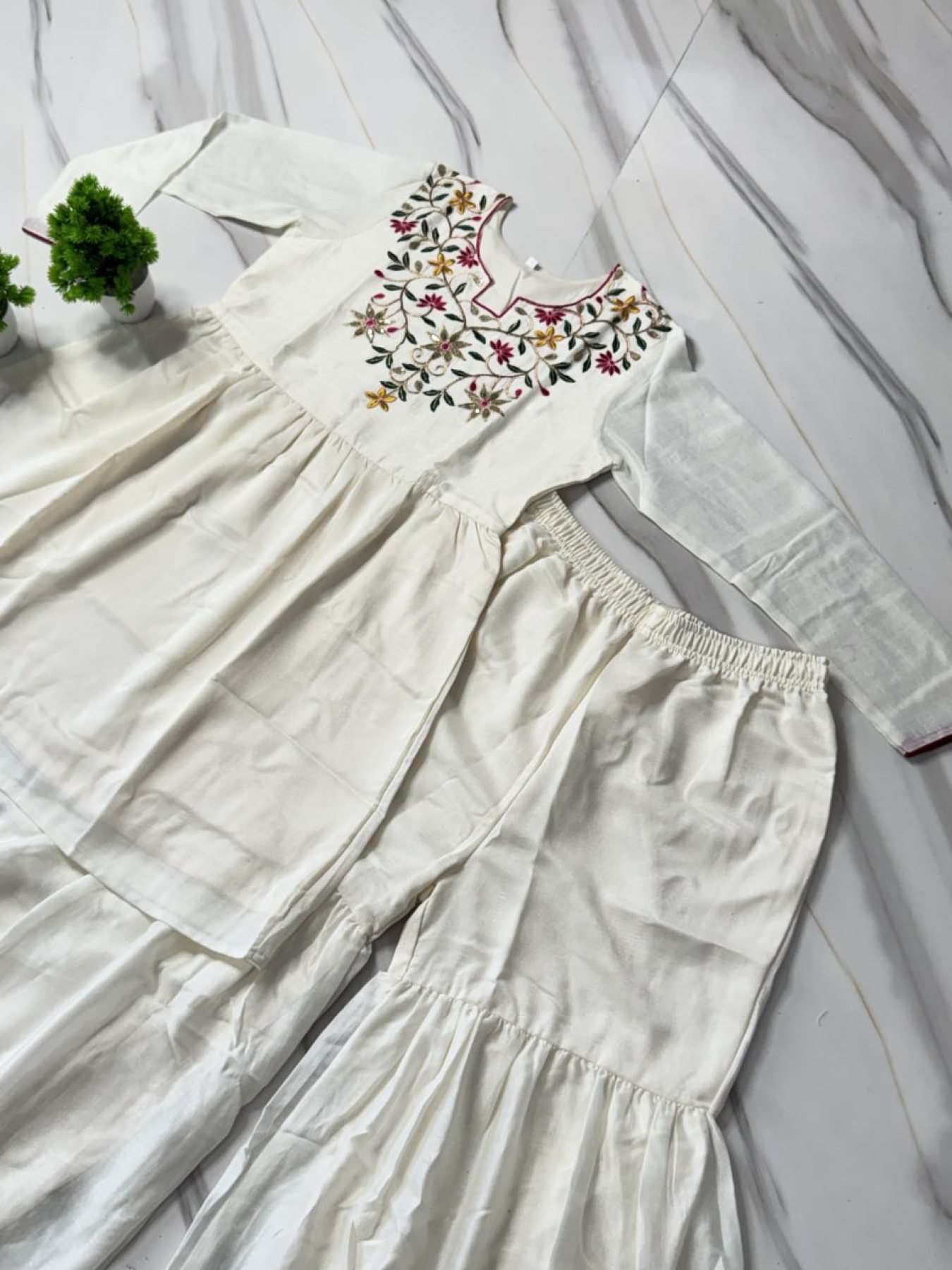 Premium White Silk Outfit with Fancy Neck Design for Festive Wear
