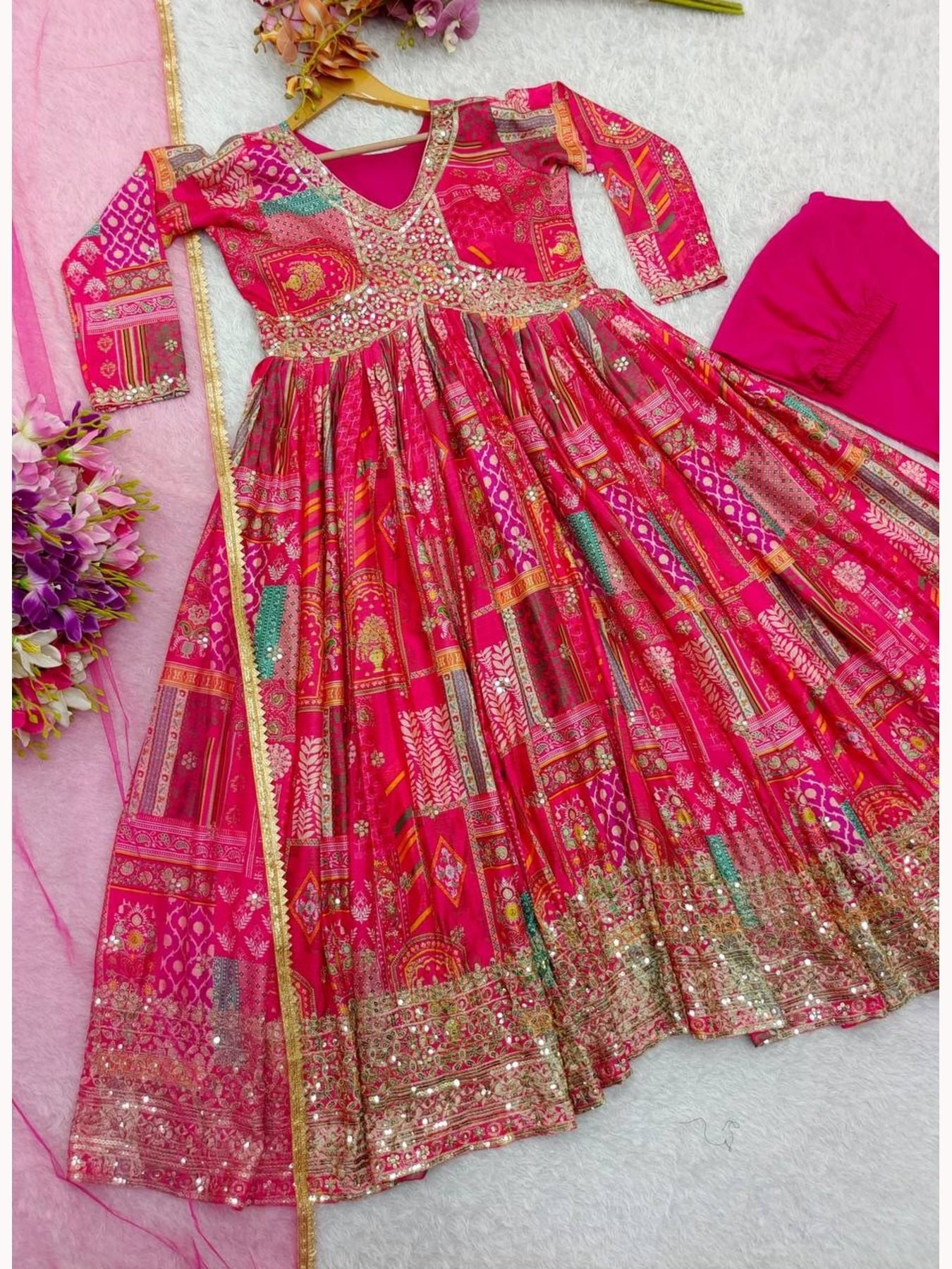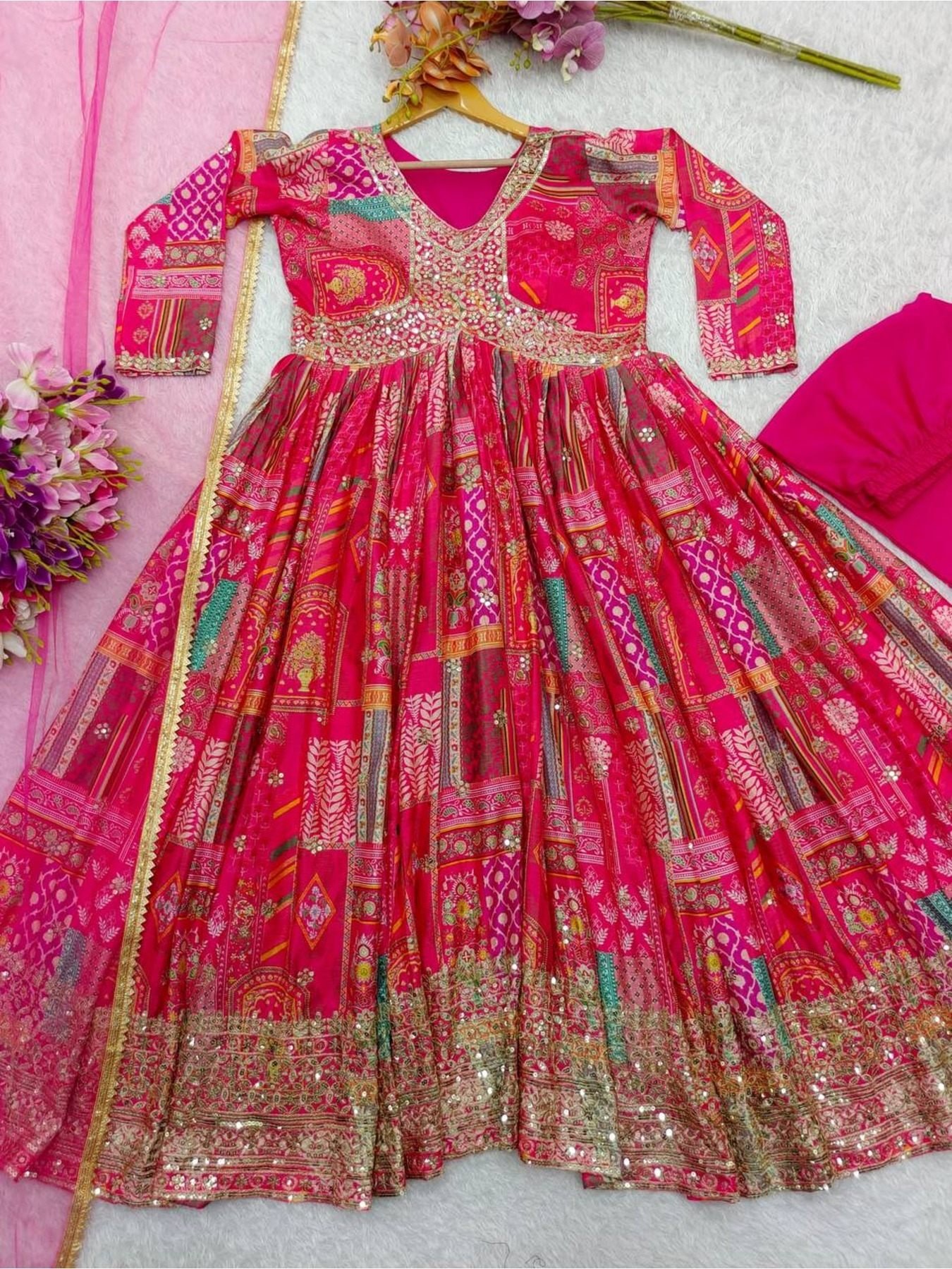 Presenting New Aliya Cut Gown Pent Dupatta Set Fully Stitched Ready To Wear