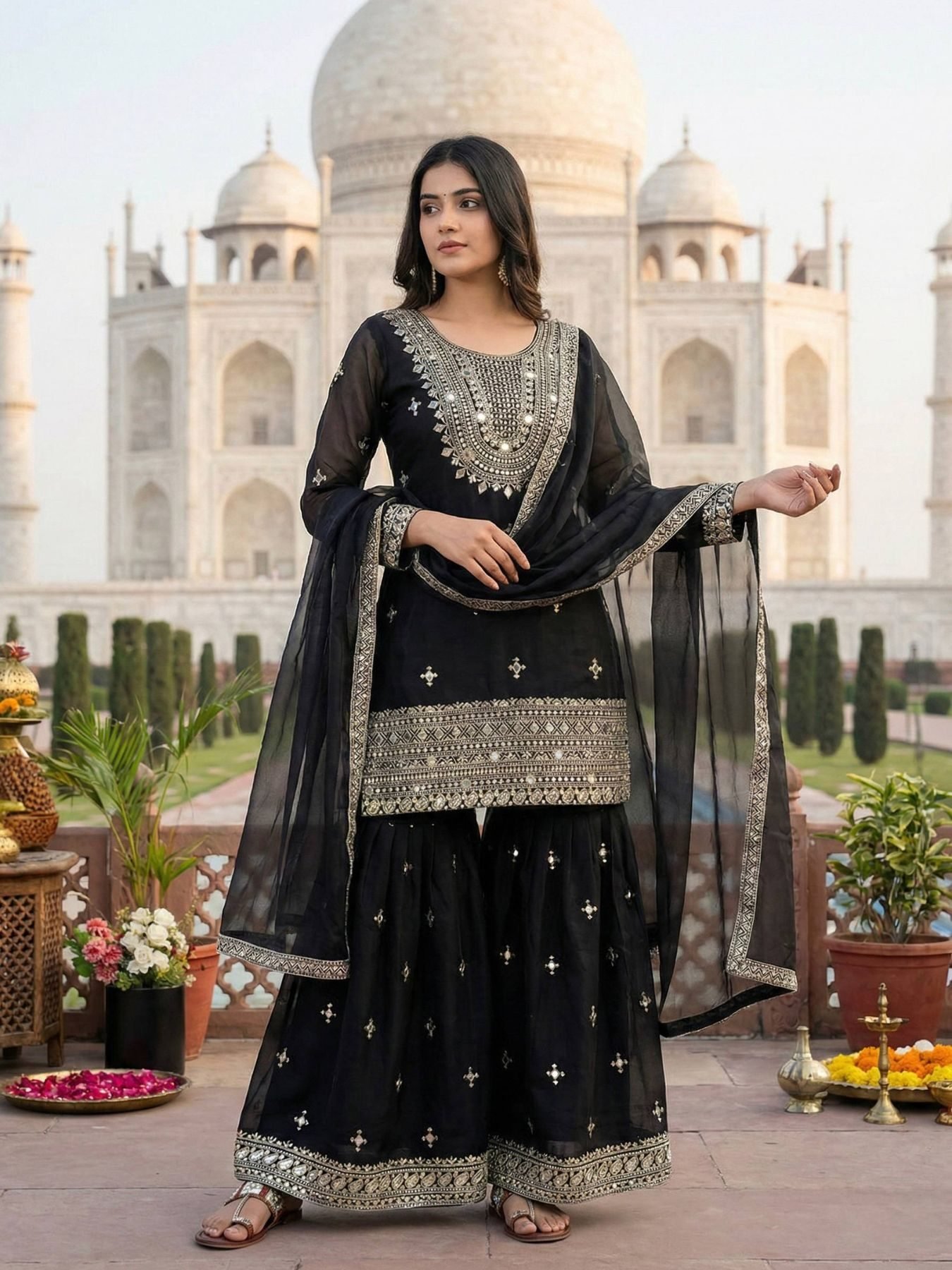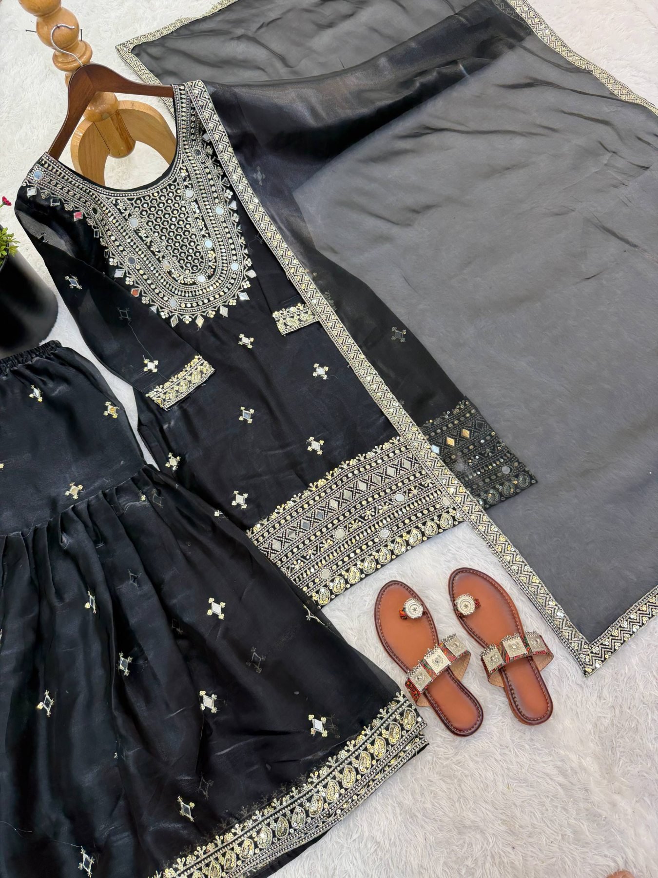 Presenting New Designer Black Trendy Eid Special Heavy Embroidery Straight Cut Palazzo Suit
