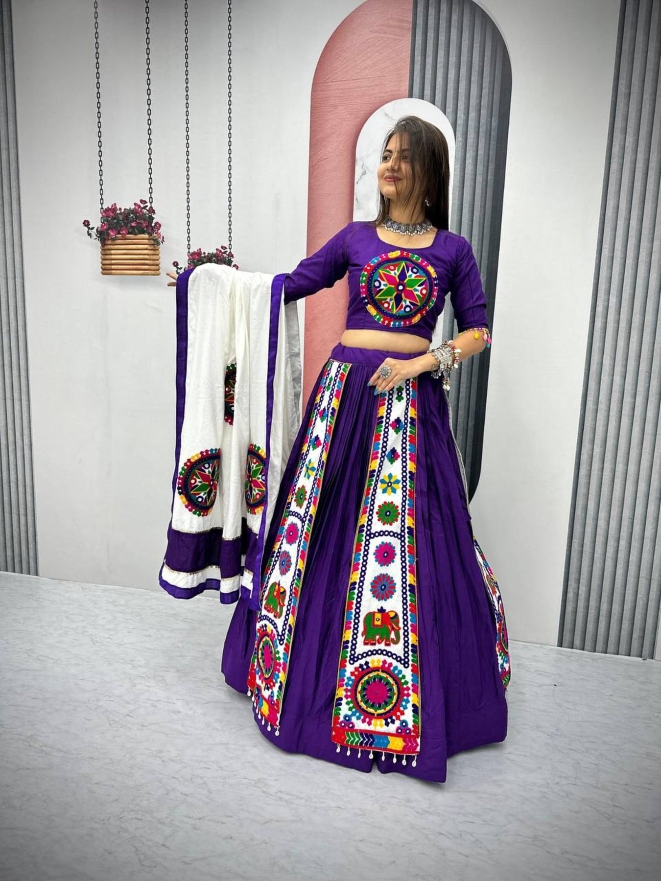 Pure Cotton Heavy Gamthi Work Navratri Lehenga Choli