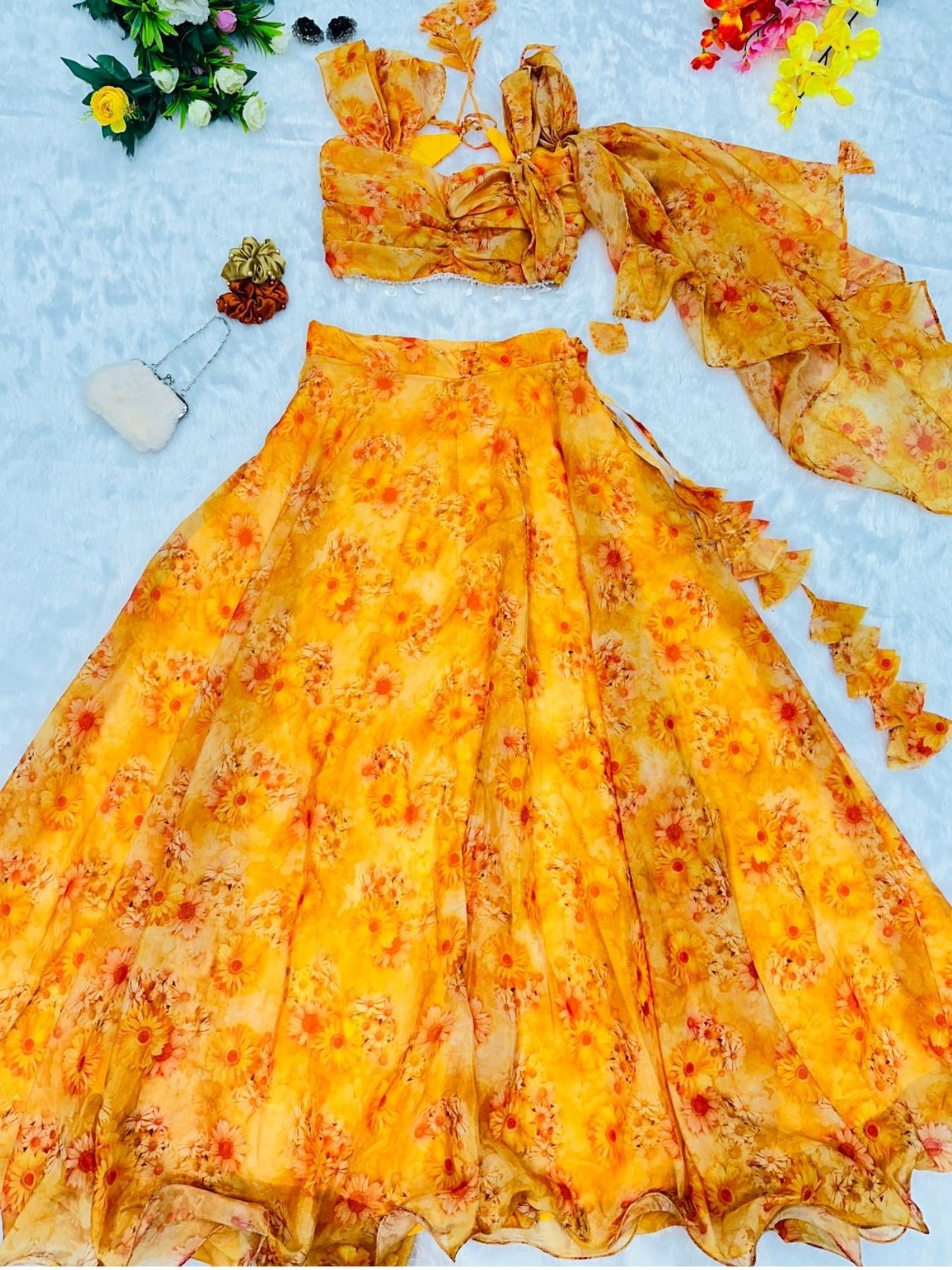 pure Jimmy organza silk blouse with Attached Dupatta fully stitched Lehenga Collection