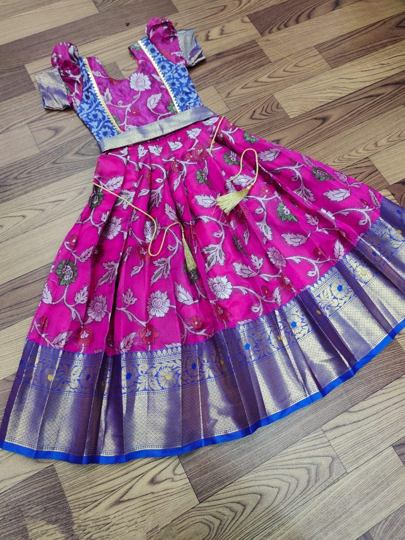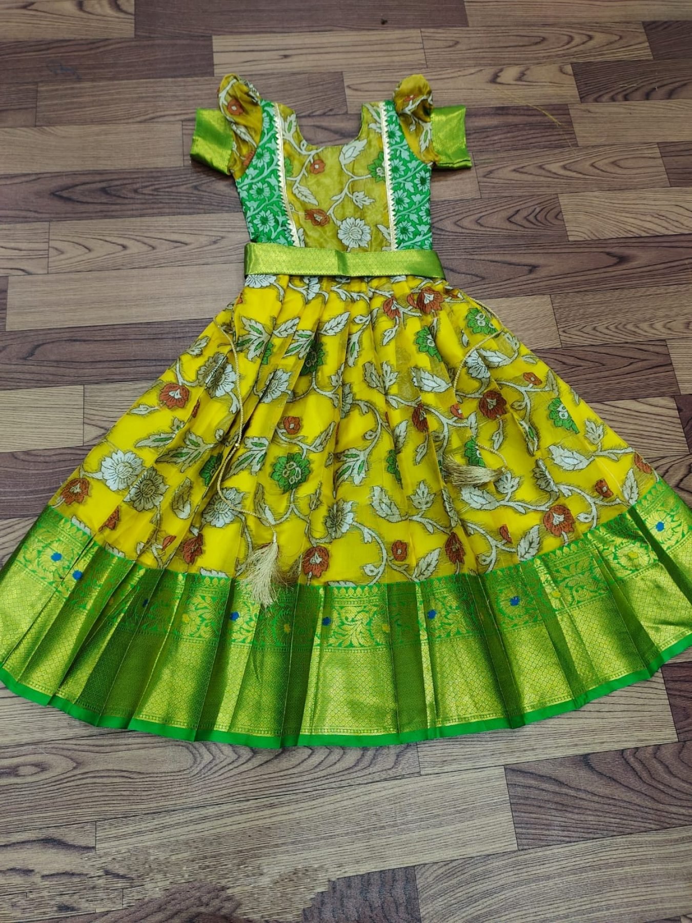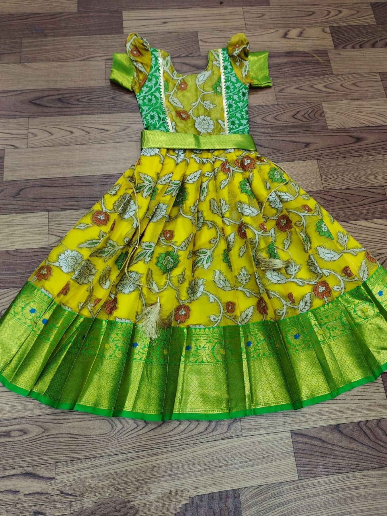 pure silk febric with kalamkari kanjivaram Kids Lehenga