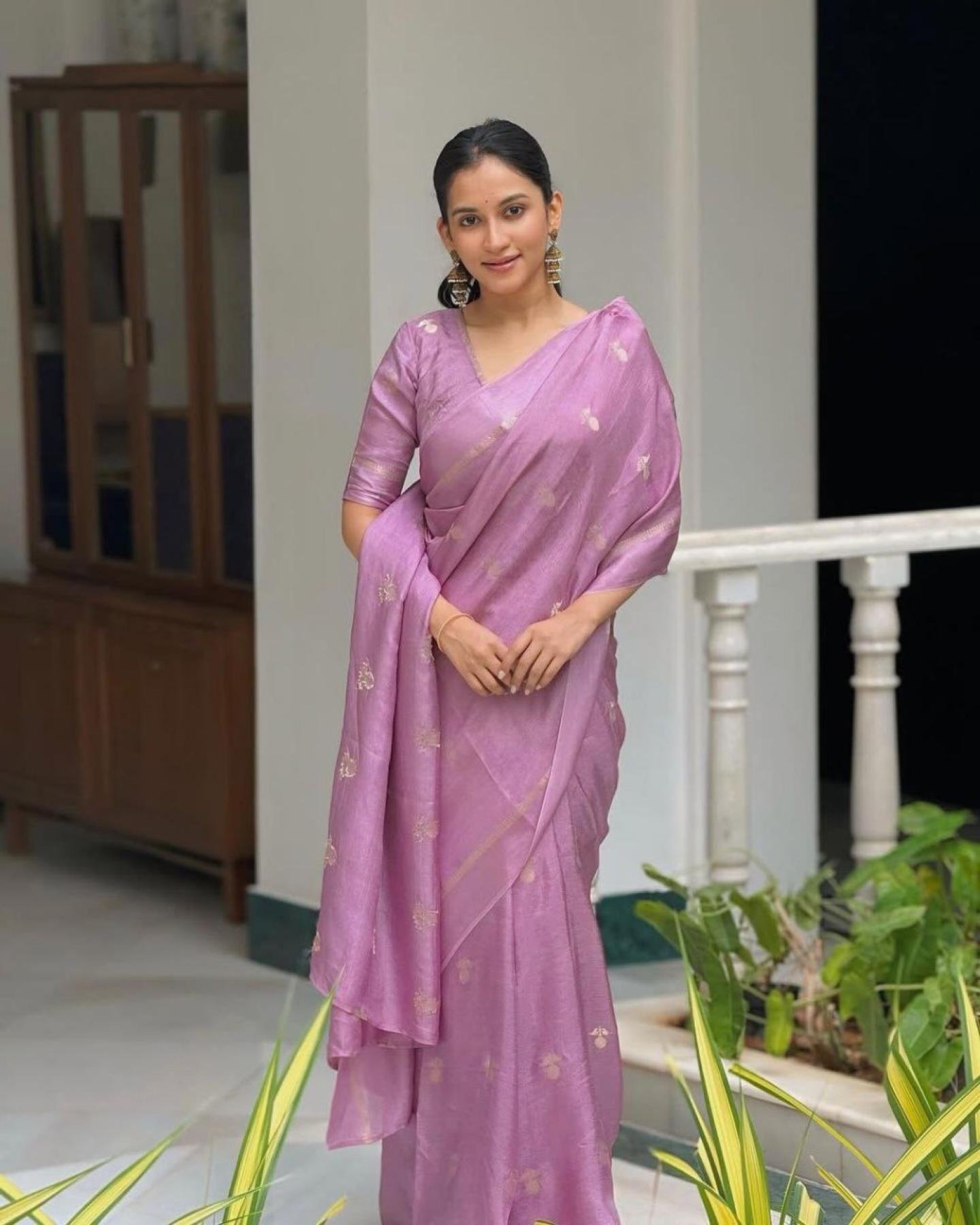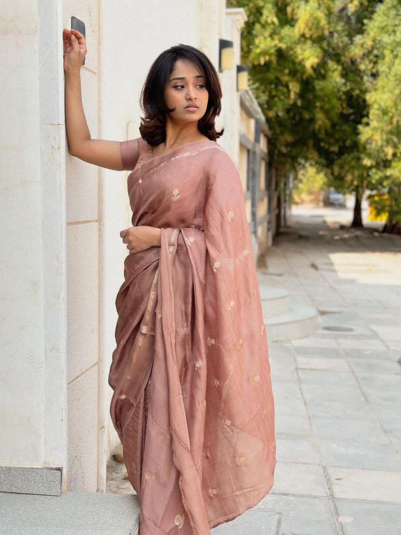 Upgrade your wardrobe with this elegant pure soft viscose khadi silk saree. Designed with a satin border on both sides and intricate jacquard leaf figure patterns all over, this saree offers a perfect blend of tradition and modern style.