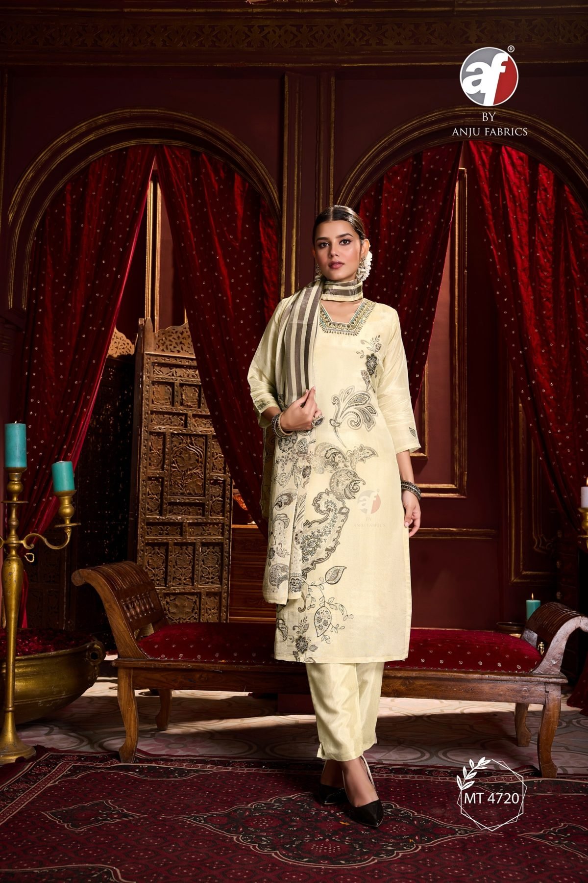 Pure Tissue Shimmer Handwork Kurti Pant with Dupatta Set At Wholesale Rate