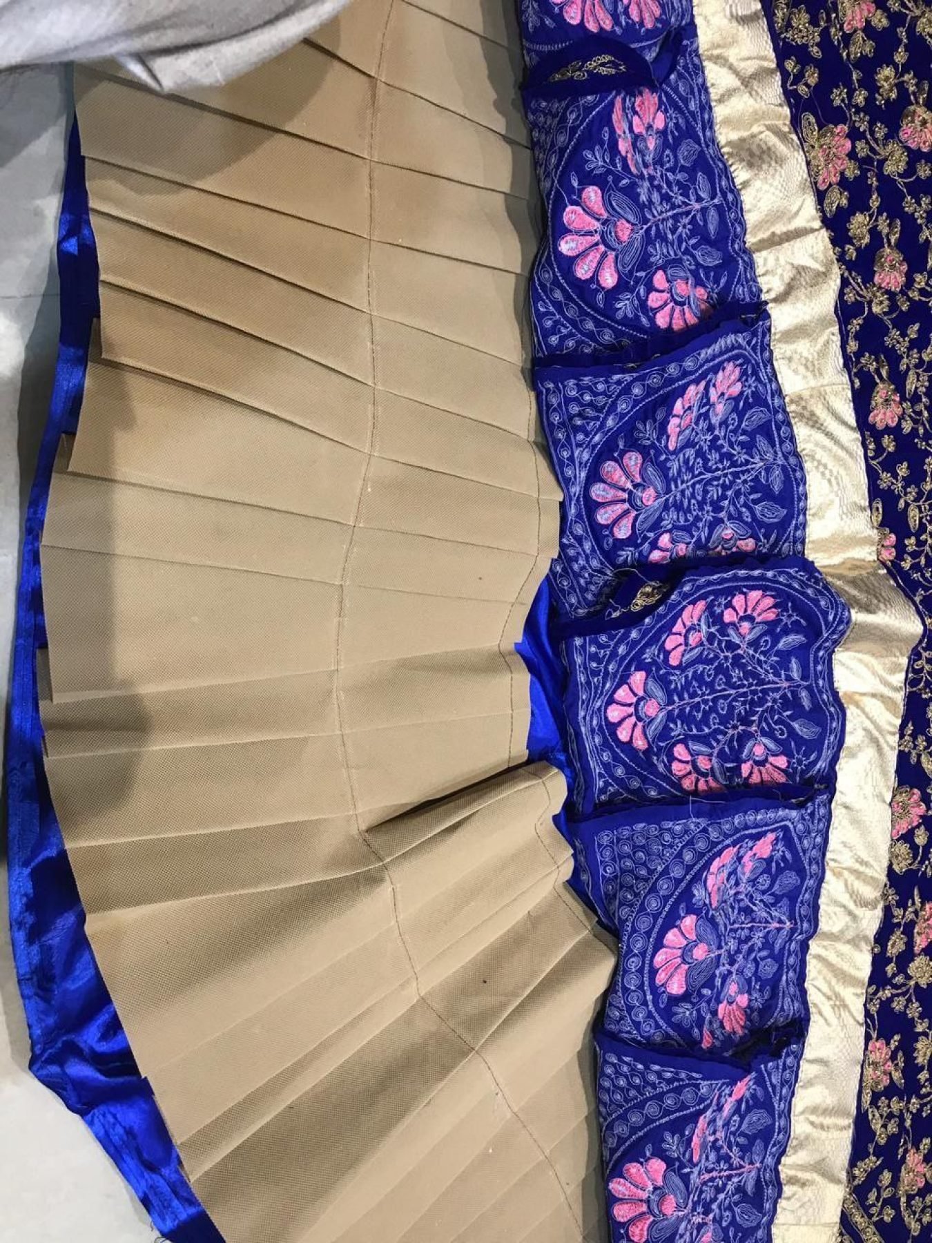 Work: Heavy embroidery with American Diamond & golden inner covering patta