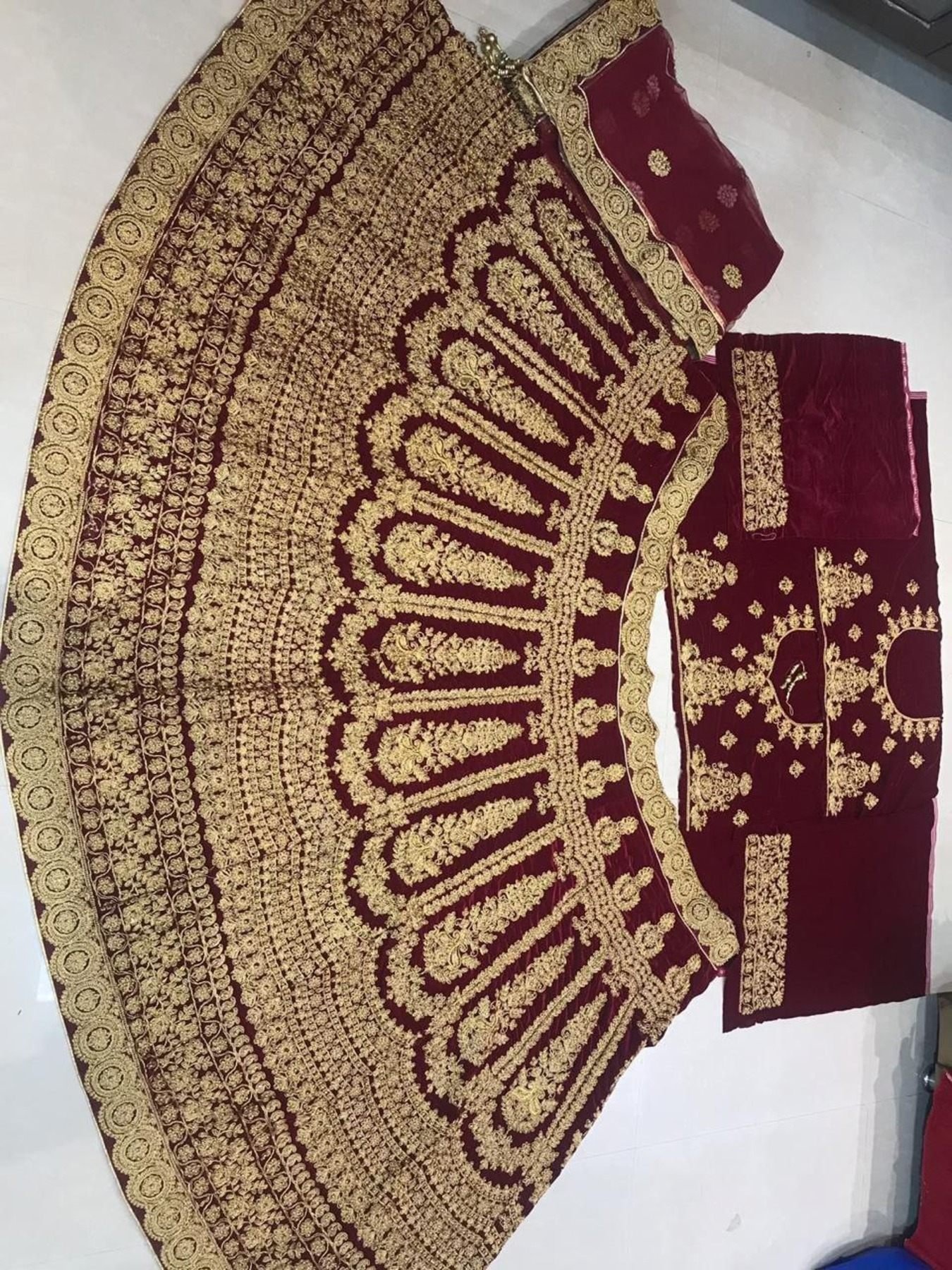 LEHENGA : Pure 9000 Velvette with Heavy CODING Embriodery Work, with AMERICAN Diamond& Golden Inner covering Patta *