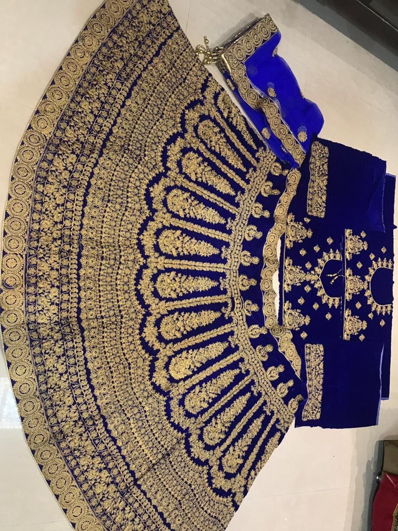 Pure Velvet Royal Blue Color With Embroidery Work Bridal Lehenga Choli