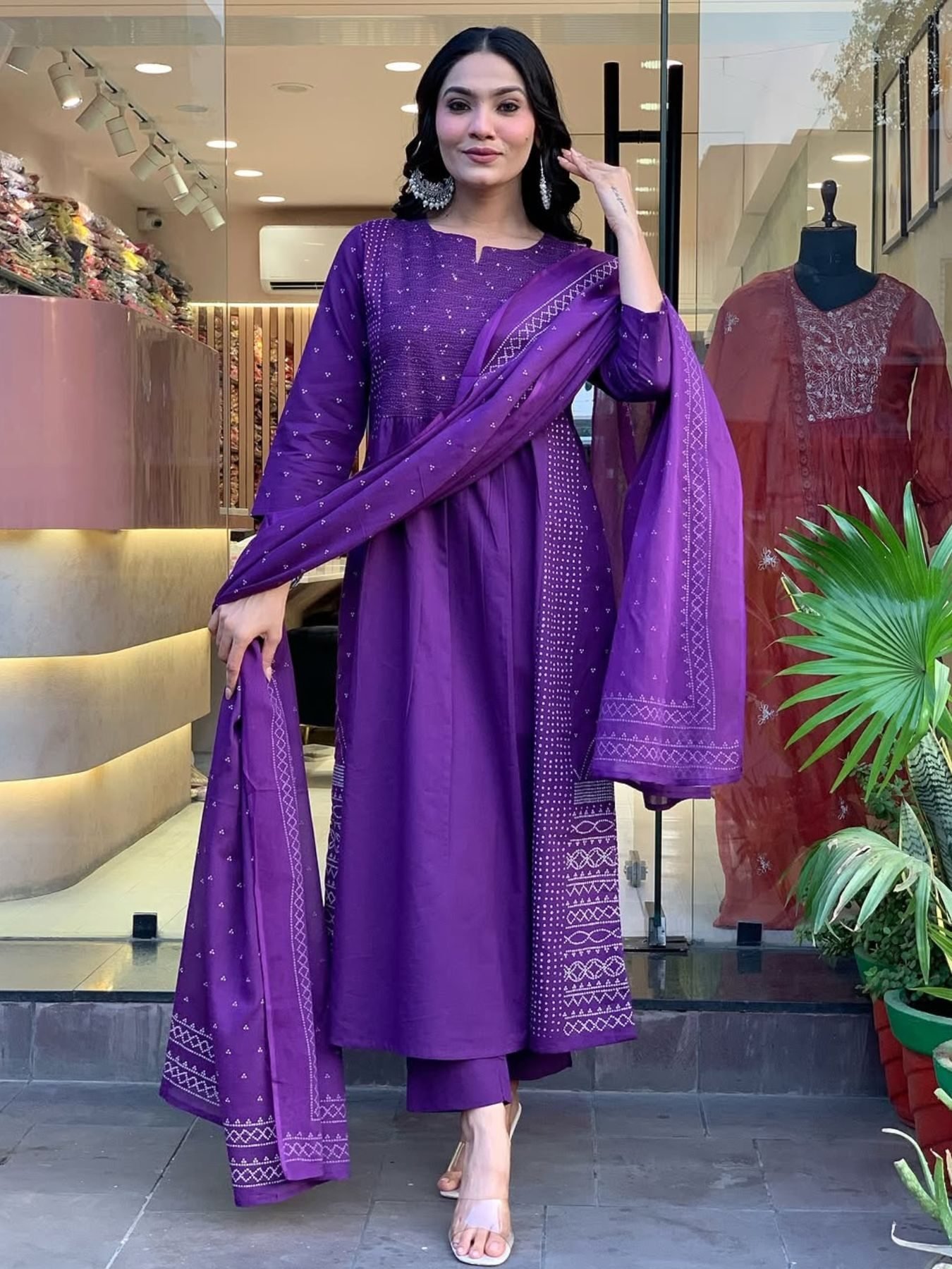 Purple Chanderi Readymade Pant Style Kurti with Dupatta Festive Wear 2025