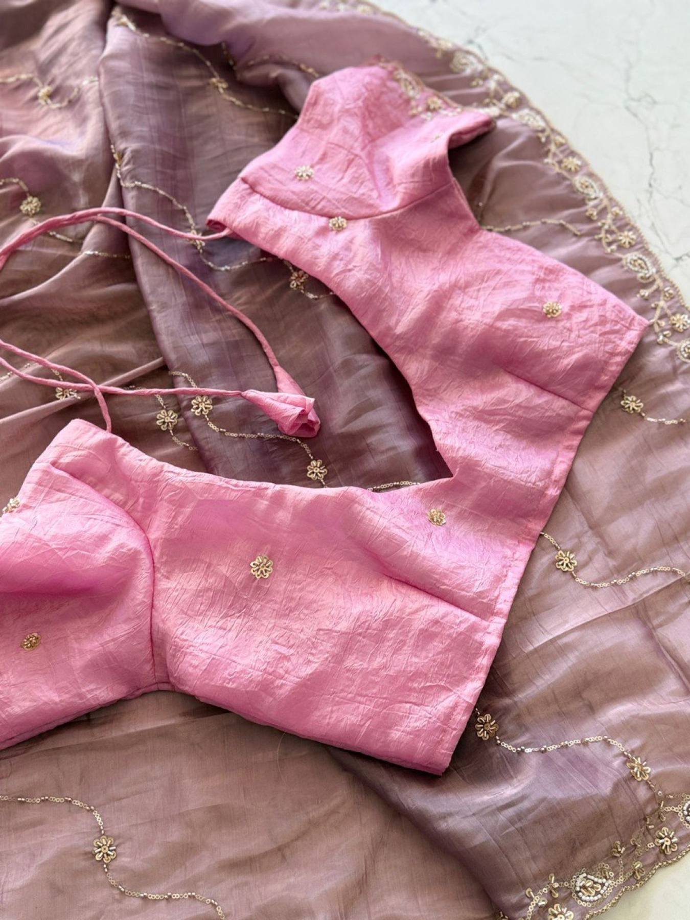 Work: Handcrafted Bits Work and Sequins Embroidery All Over the Saree