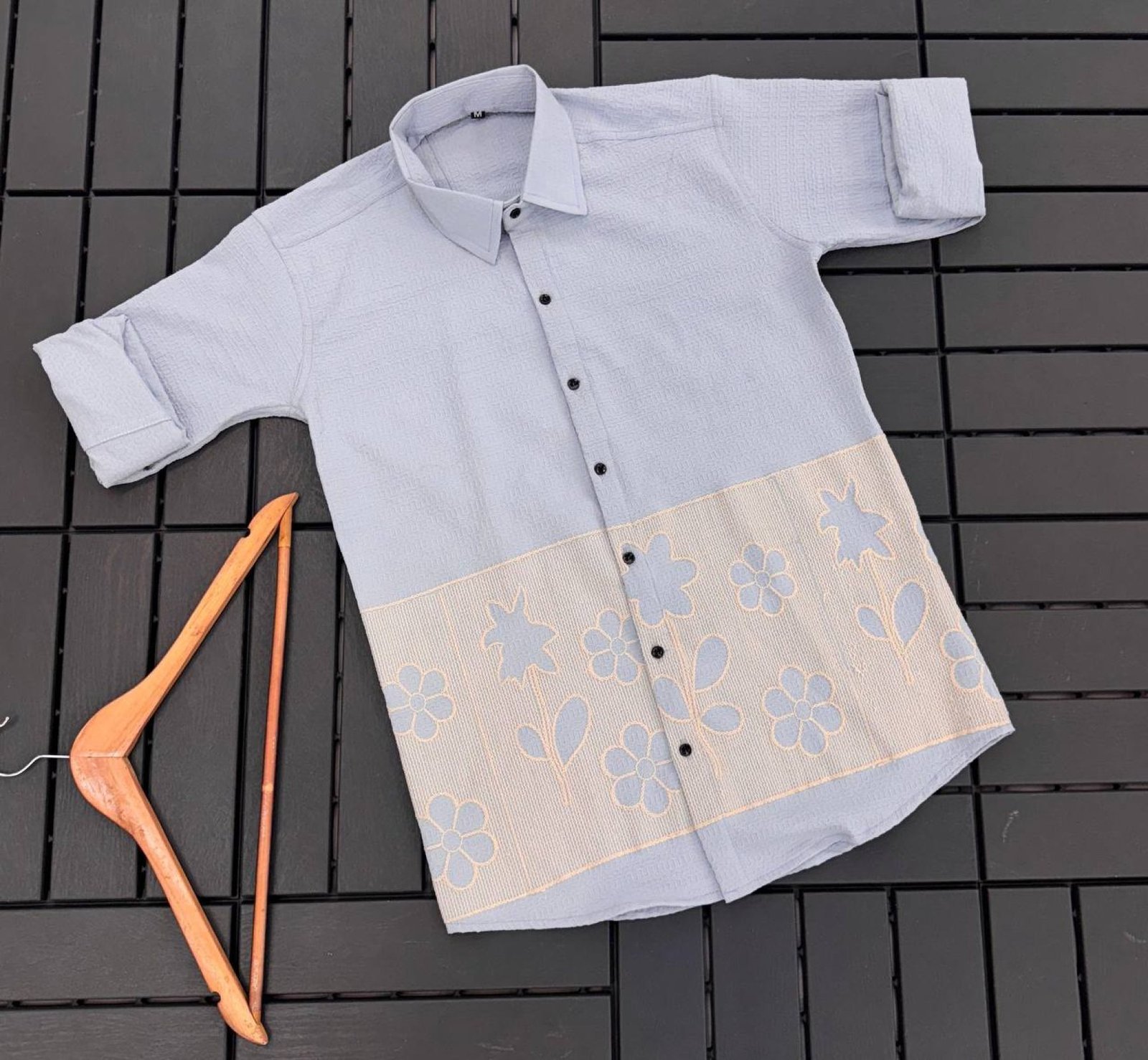 Premium men’s shirt crafted in dobby cotton fabric featuring elegant embroidery work. Designed for comfort and style with full sleeves and breathable fabric, perfect for daily wear, office wear, and casual outings.