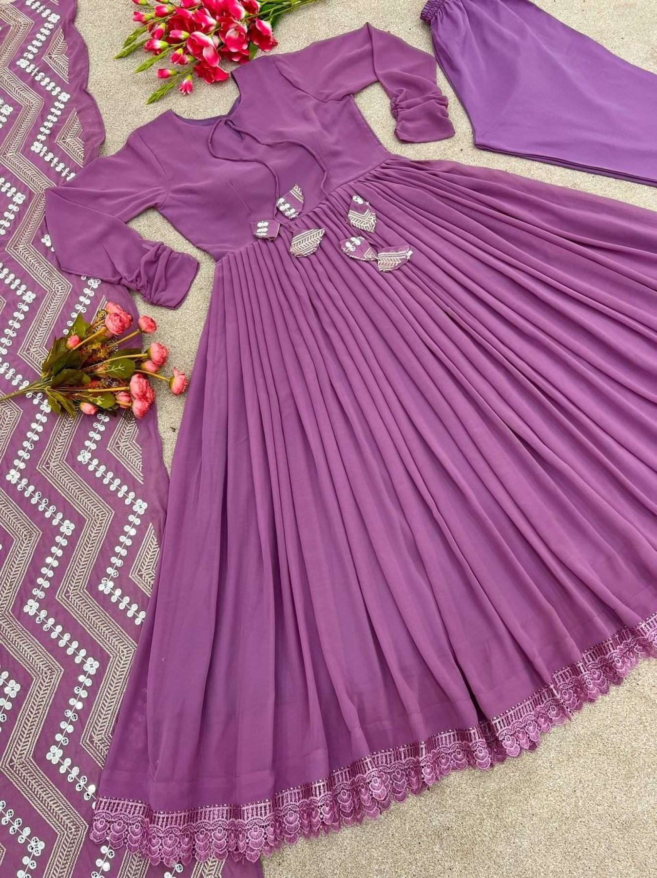 Purple Georgette Anarkali Suit Set