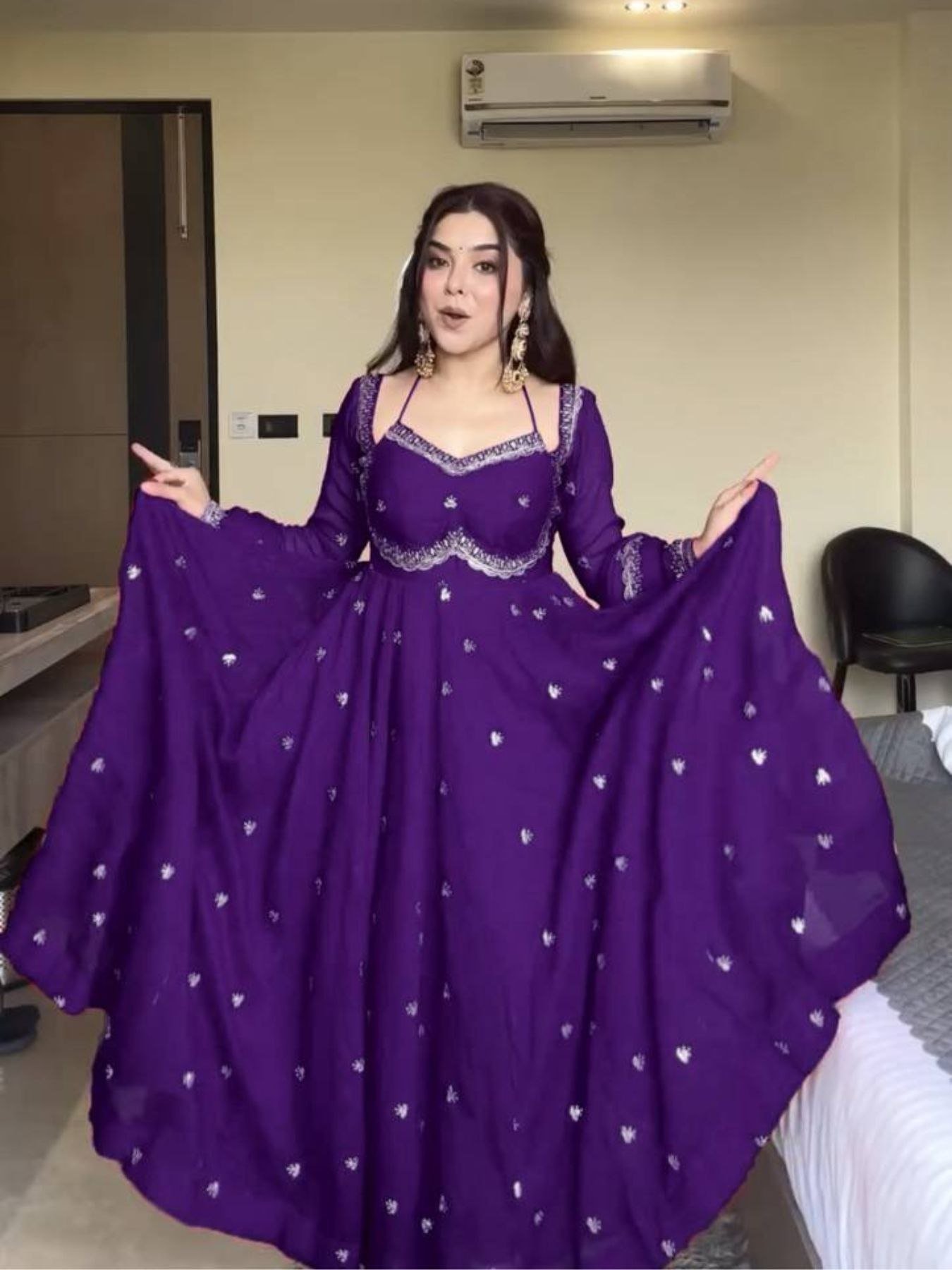Purple Georgette Embroidery Anarkali Suit Set with Dupatta Ready to Wear for Celebrations