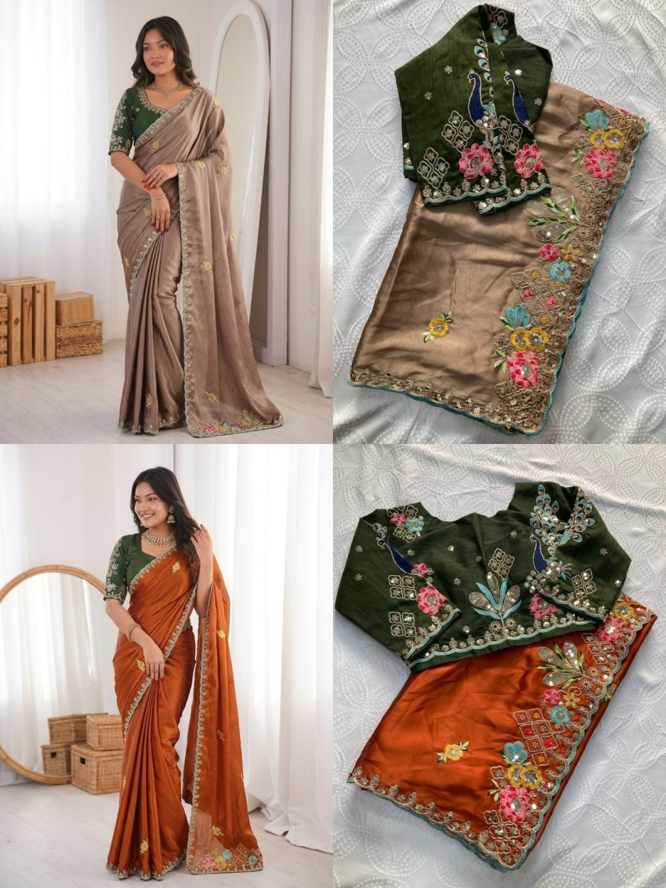 Premium Rangoli silk saree designed with heavy embroidery, coding work, multi embroidery butti, and elegant cutwork border. Paired with a rich embroidered mono Banglori silk blouse, this saree is perfect for weddings, festive occasions, and traditional wear.