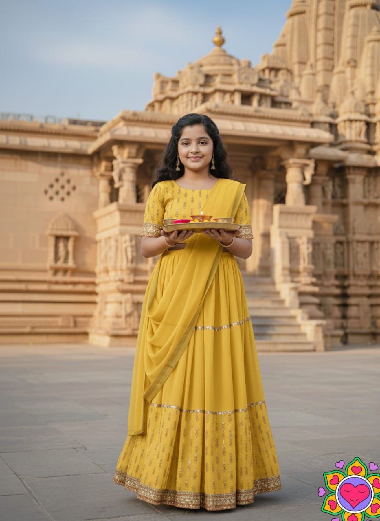 Elegant kids lehenga choli set in georgette fabric featuring sequins work with lace border dupatta. Perfect for festive and party occasions.