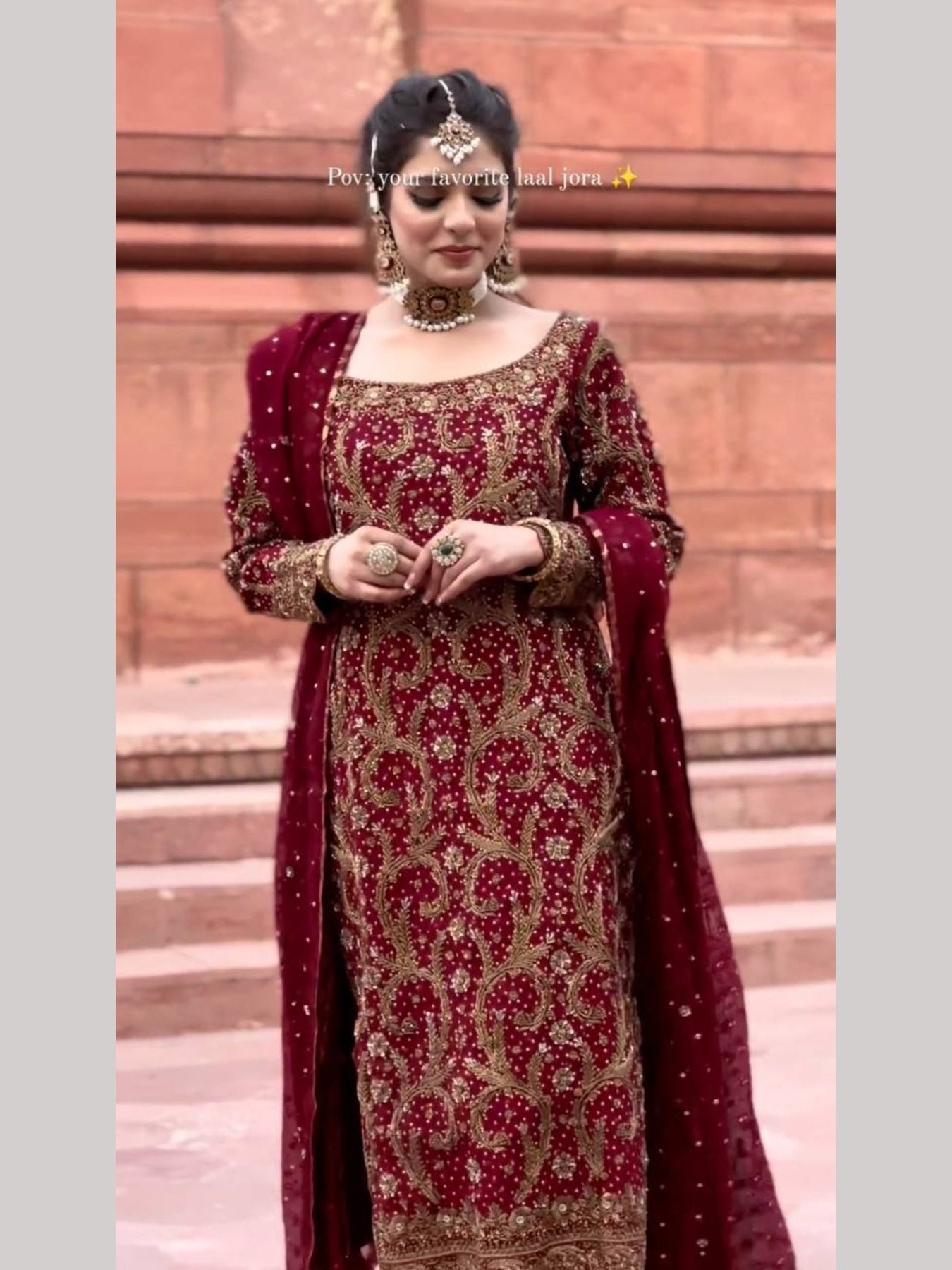 WORK* :- BEAUTIFUL EMBROIDERY SEQUENCE WORK. (Golden stone hand work)(only front side)