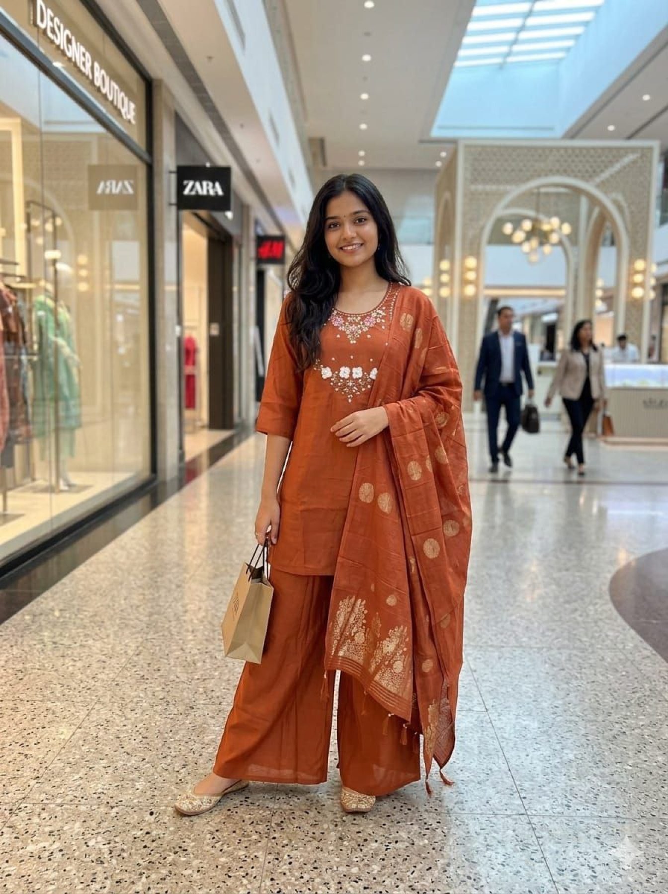 Shop premium Mal Chanderi short top set with real handwork, Roman silk palazzo, and muslin silk dupatta. Available in sizes M to 3XL at wholesale and manufacturer rates. Perfect festive and party wear collection.