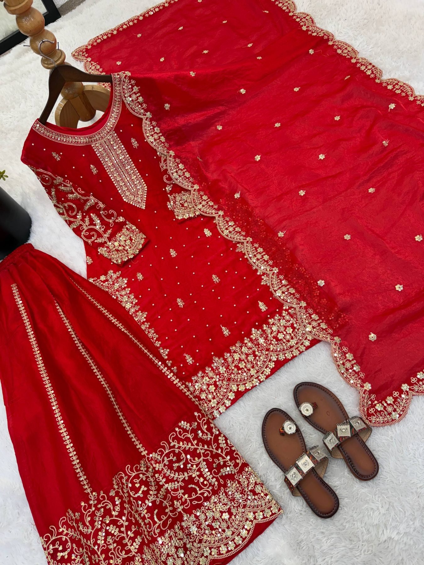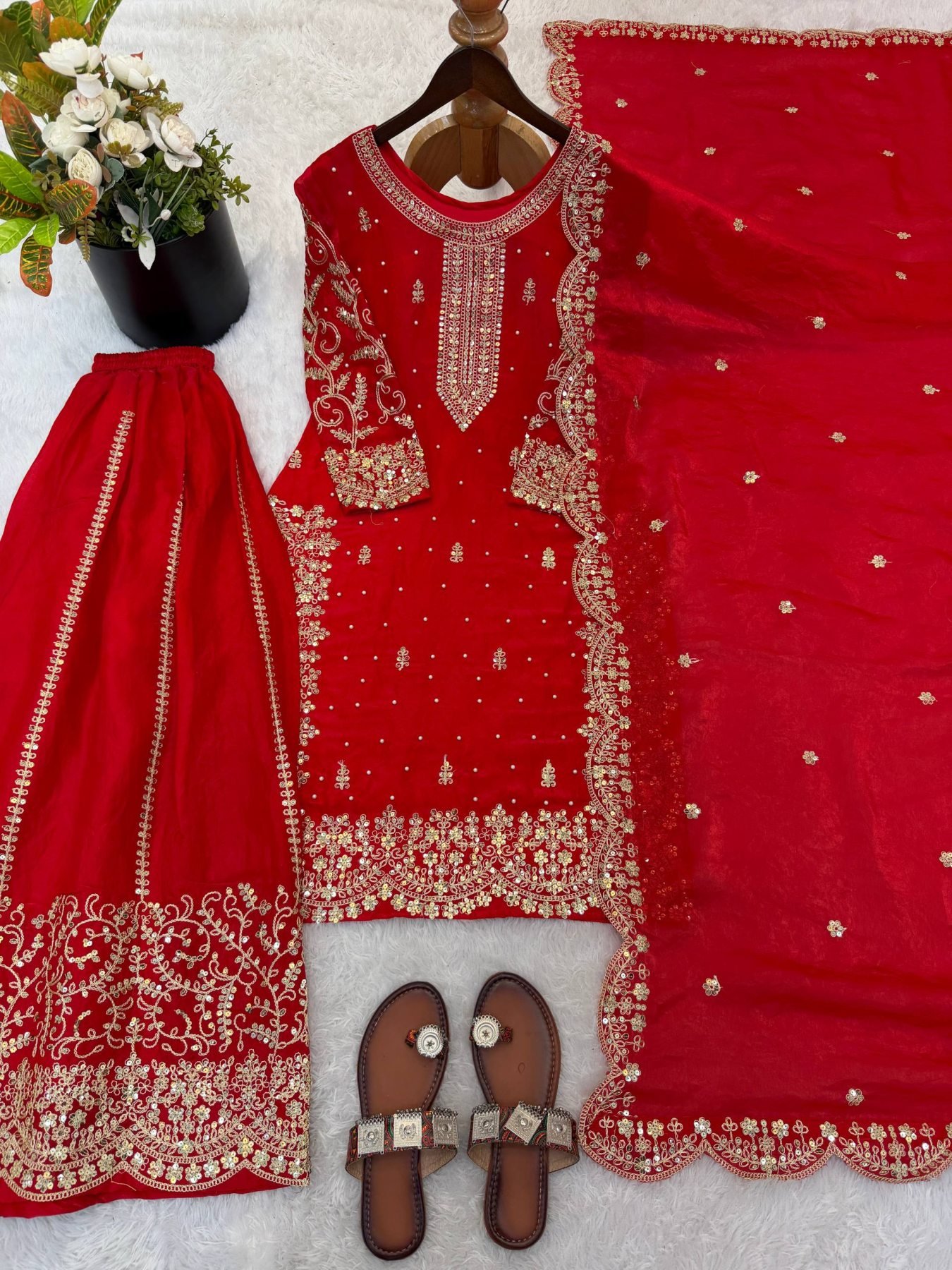 Red Bollywood Style Designer Suit Set With Palazzo for Wedding Wear Women