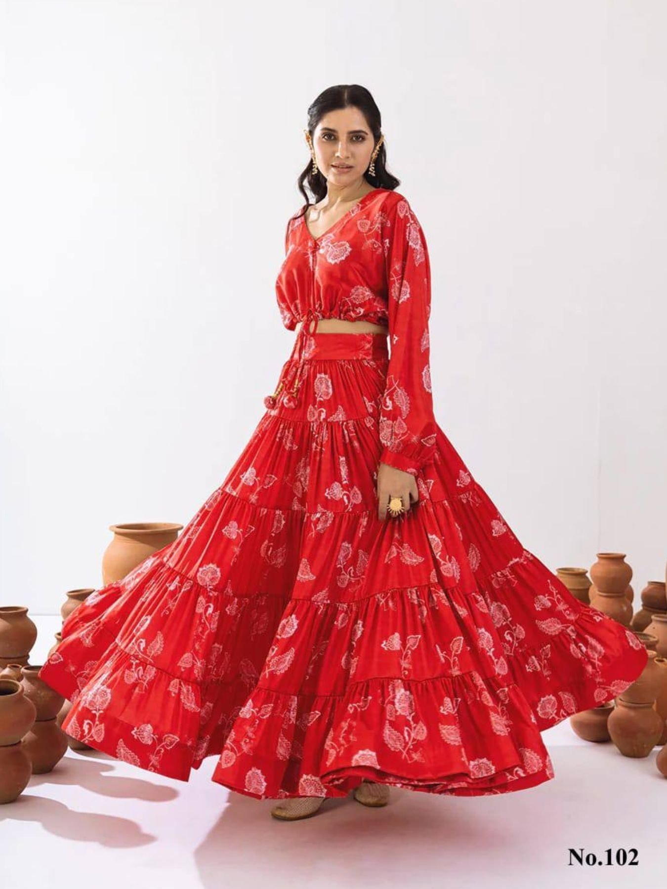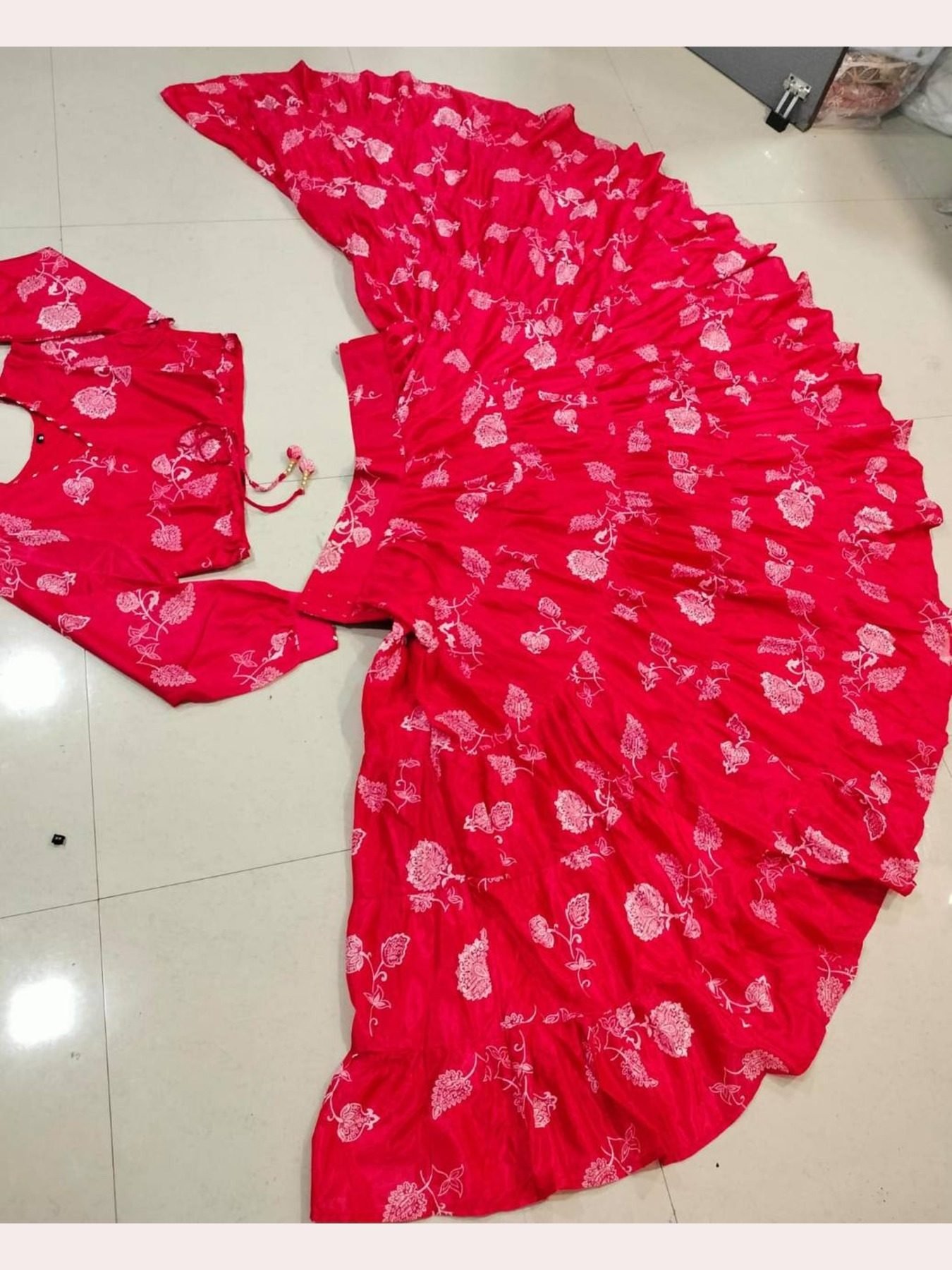Red Color ReadyMade Heavy Chinon Printed Lehenga Choli