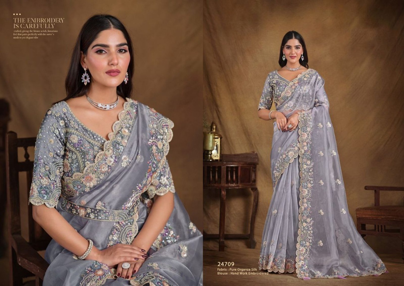Regal Bloom Ensemble Smooth Fall Saree with Statement Embroidery for Evening Elegance