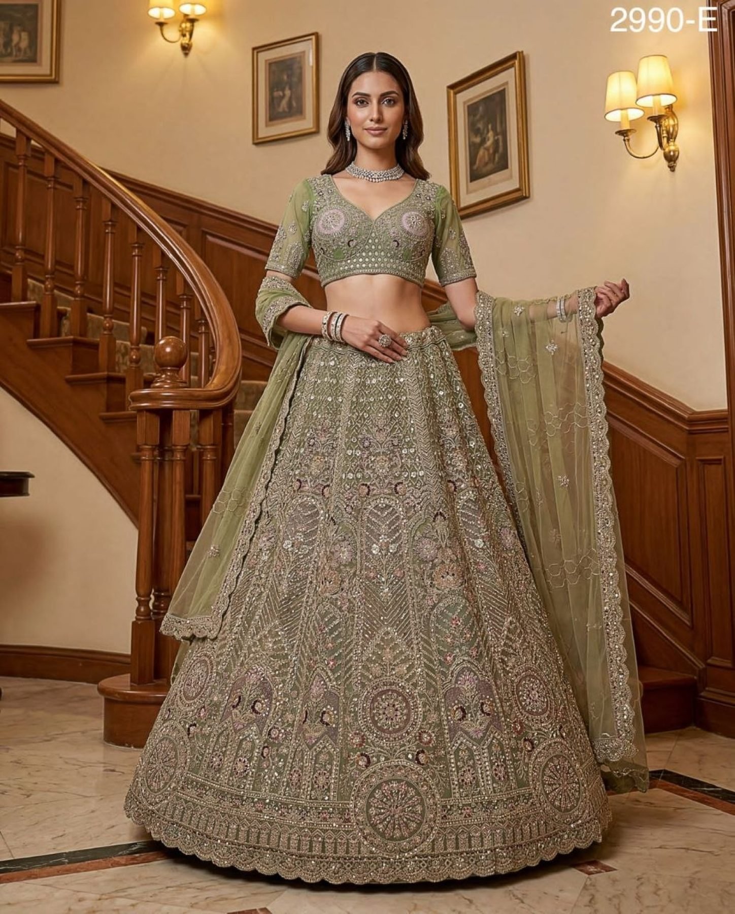 Rich Pista Embroidered Lehenga Choli for Bride and Reception Wear