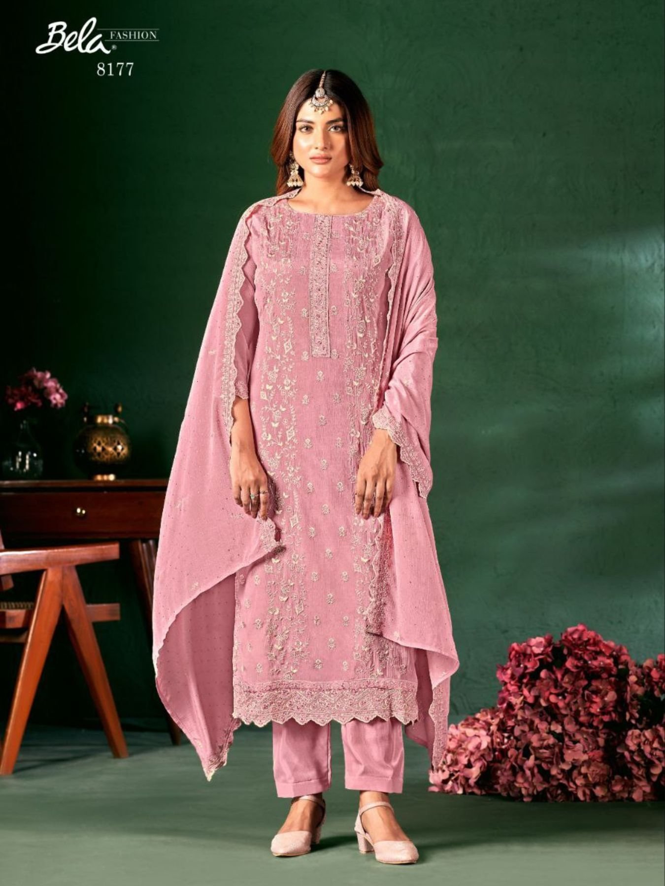 Rosy Radiance Pink Chinon Suit Set with Heavy Swarovski Dupatta Set