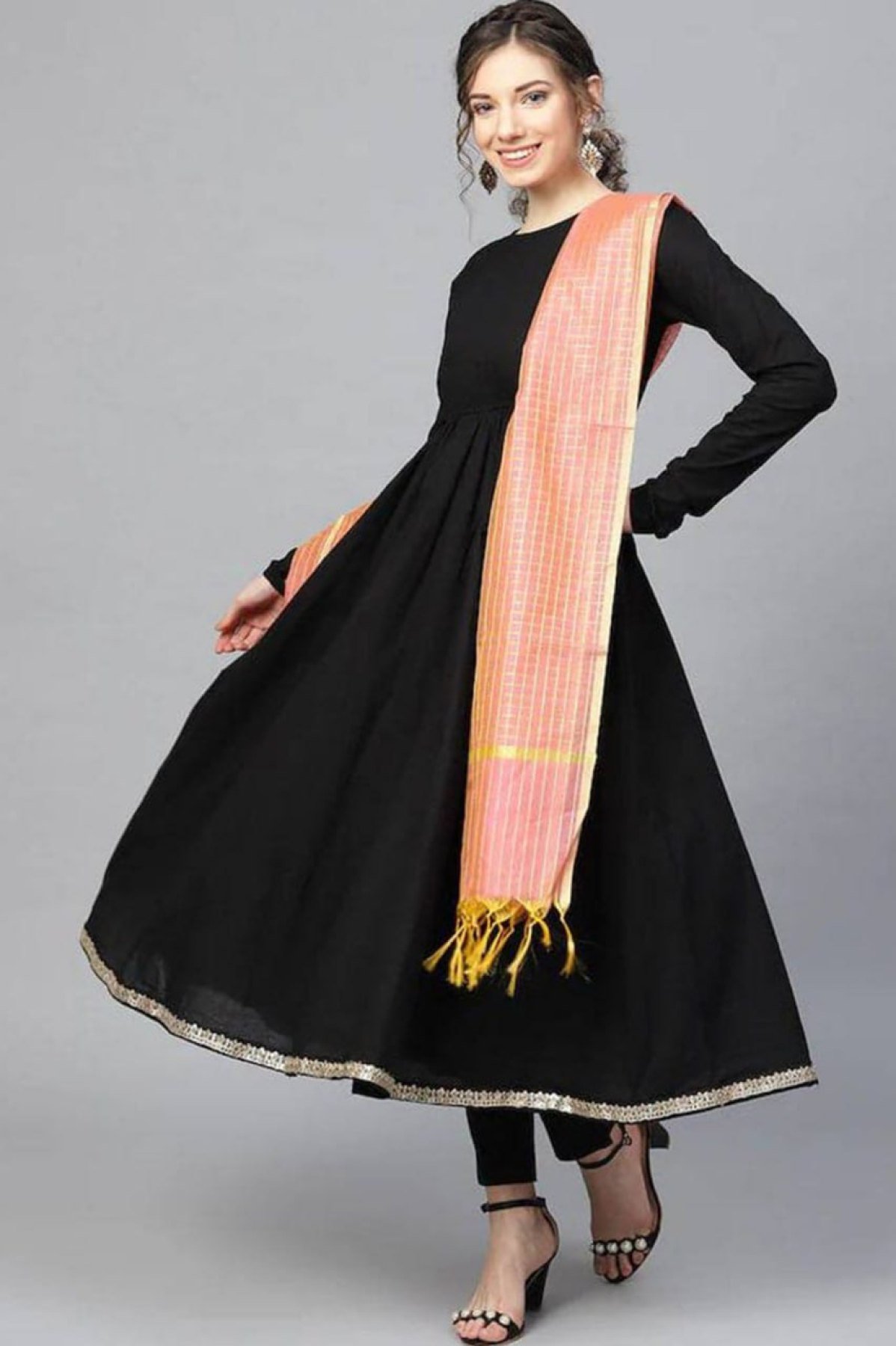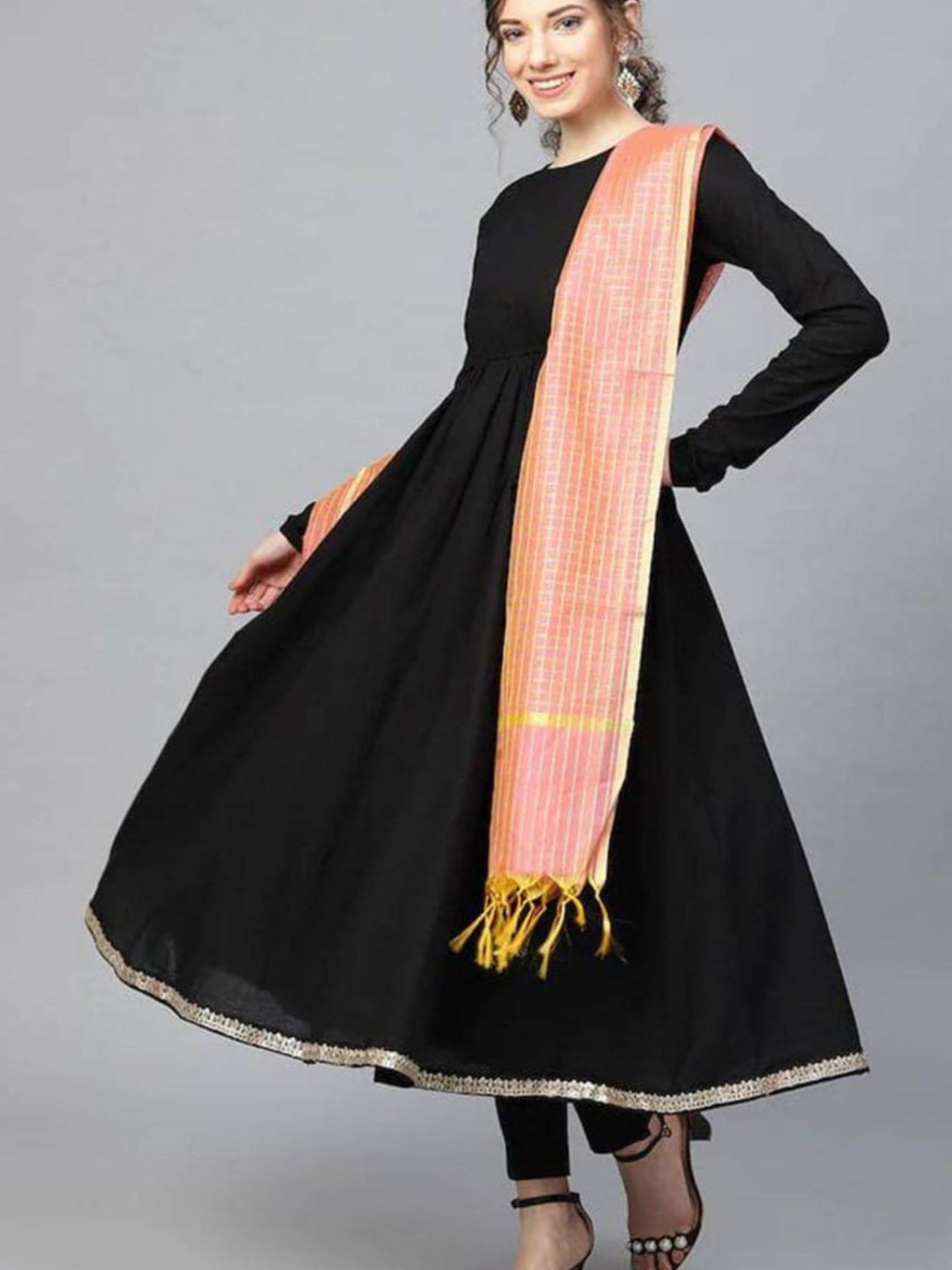 Royal Black Anarkali Kurti Set – Cotton Fabric & Checked Dupatta