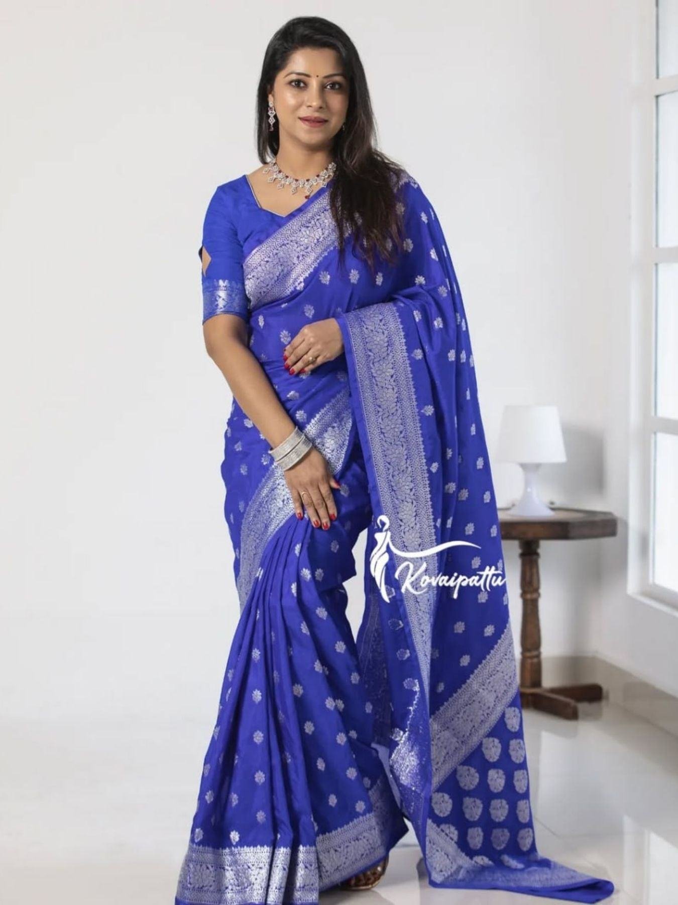Flosive Royal Blue Banarasi Soft Silk Saree – A Classic Weave of Royal Elegance