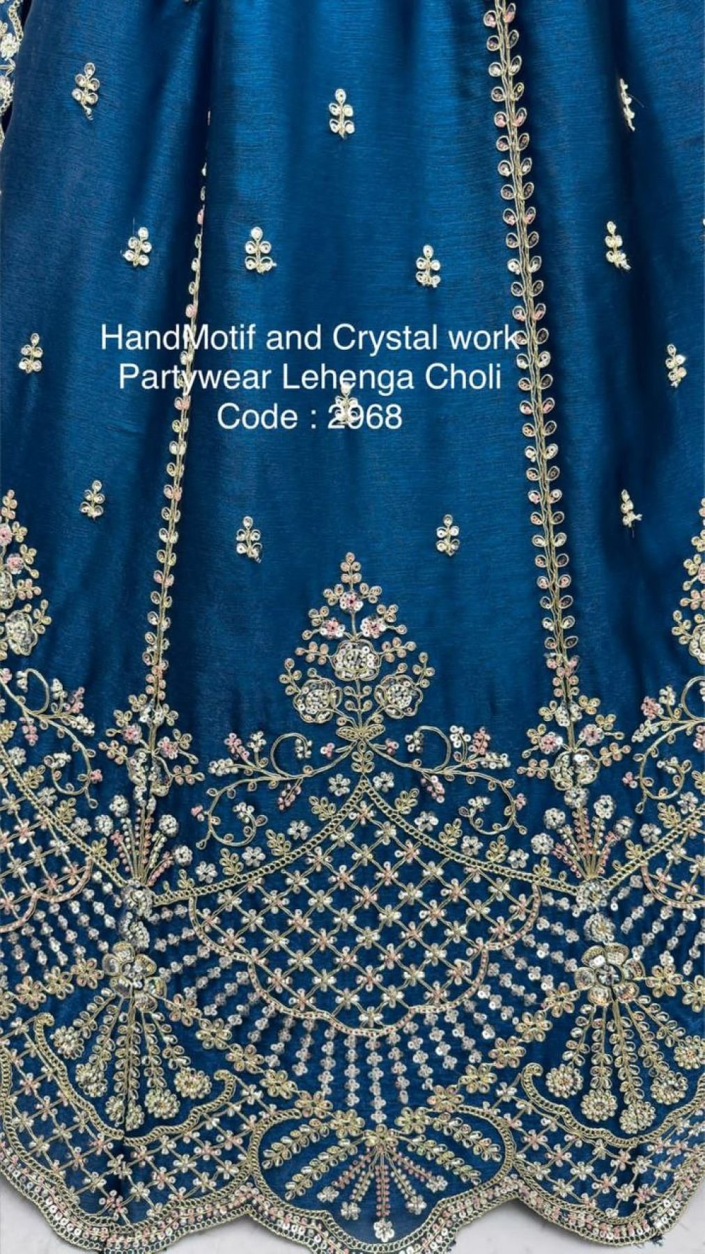 Work: Handwork Motif and Crystal Work with Dori Embroidery, Rainbow Sequins and Multi Embroidery