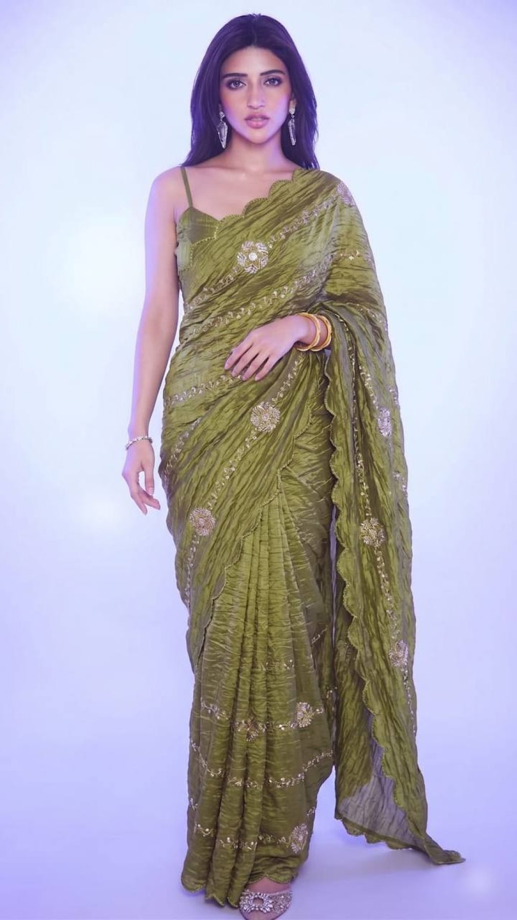 Royal Mahendi Green Gold Crush Saree with Heavy Embroidery Look