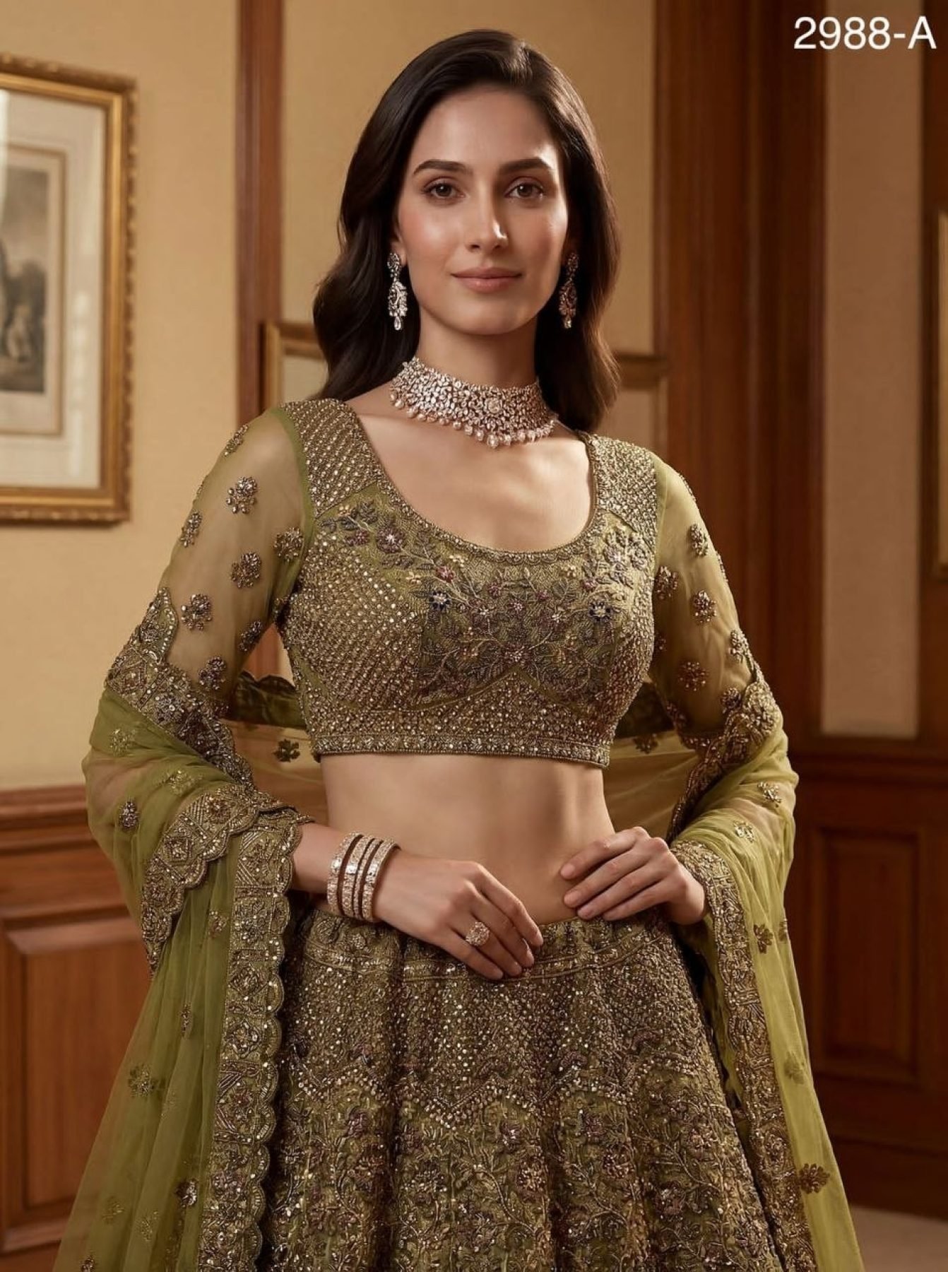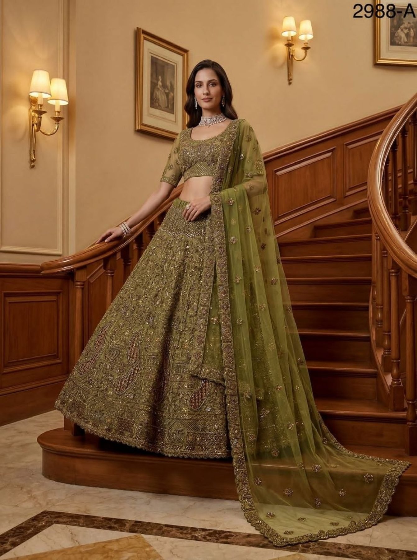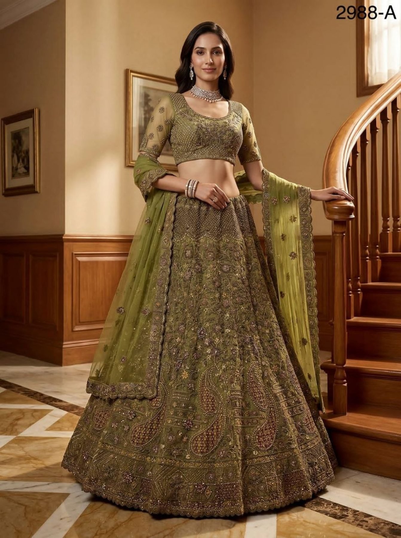 Royal Pista Wedding Lehenga Choli with Diamond and Thread Work For Wedding