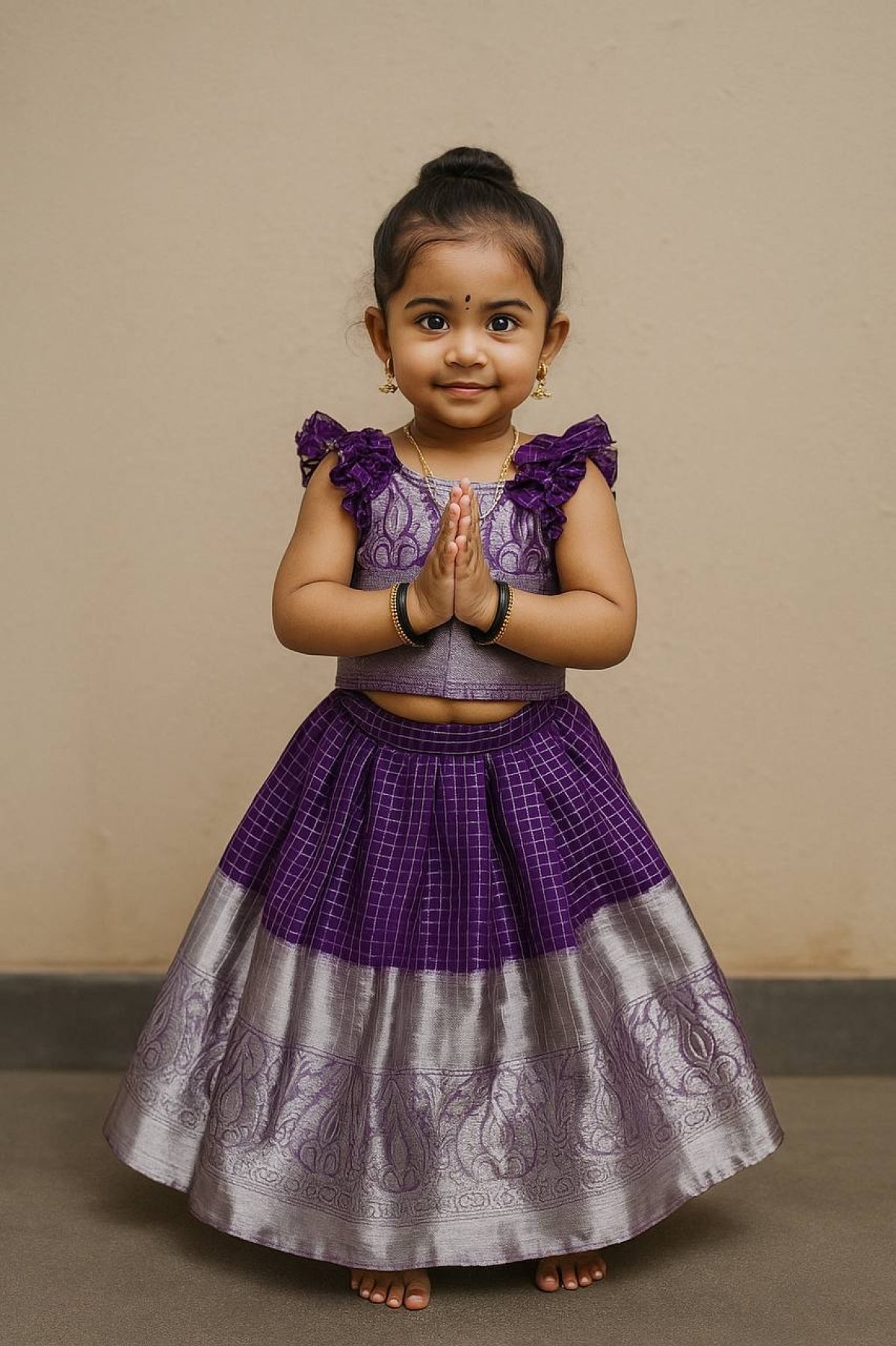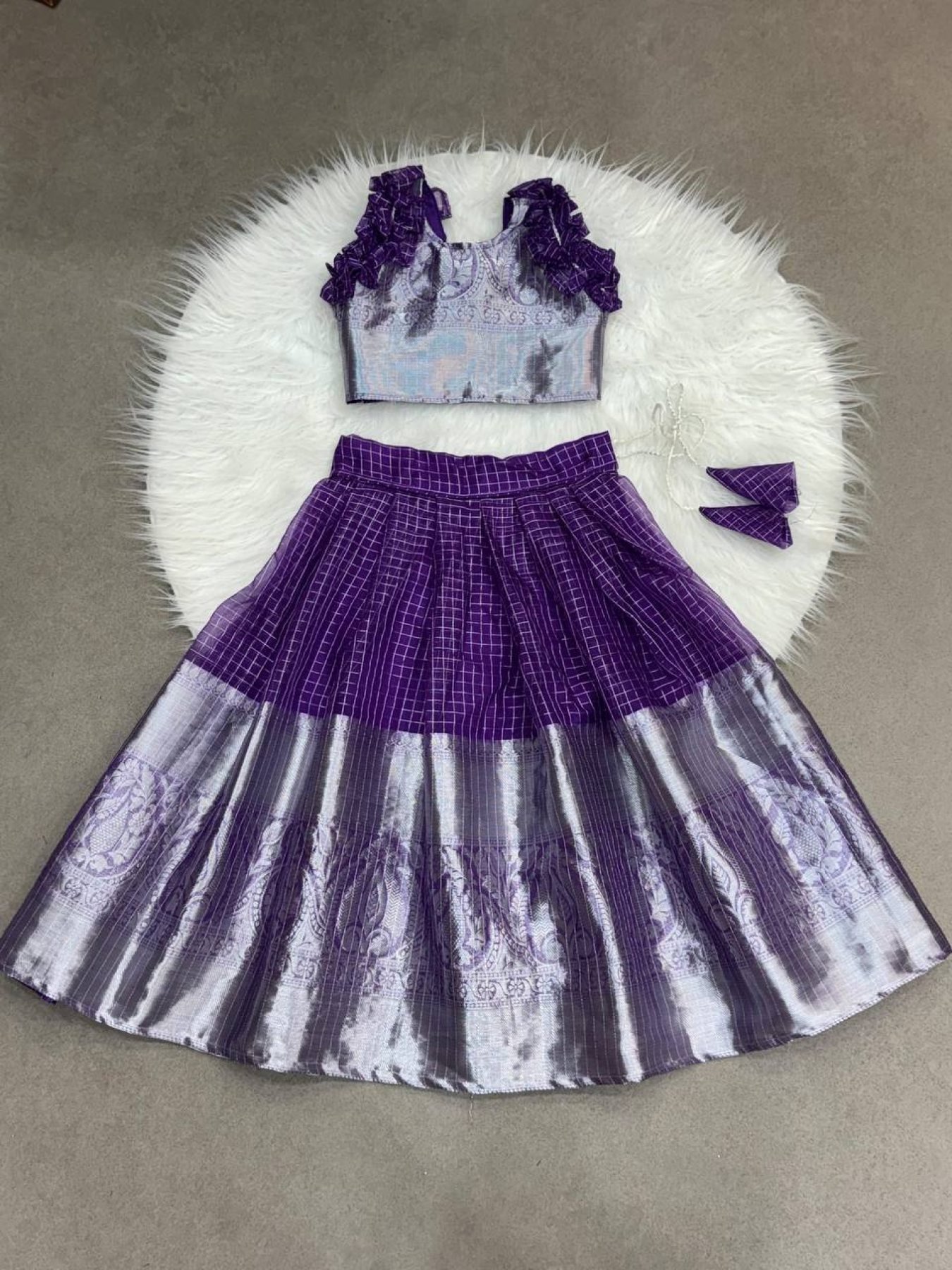 Royal Purple Organza Zari Lehenga Set For Little Girls at Festivals and Weddings