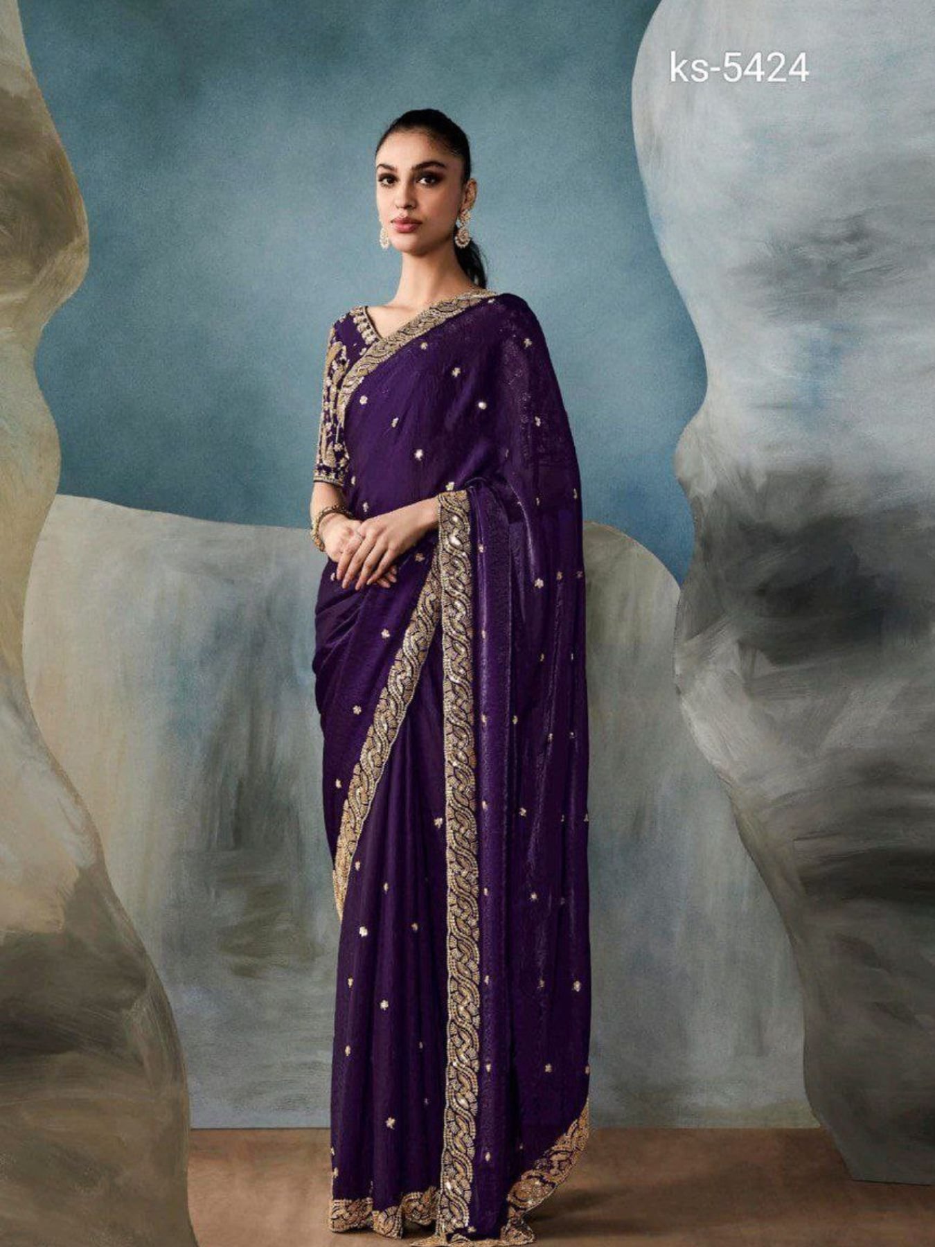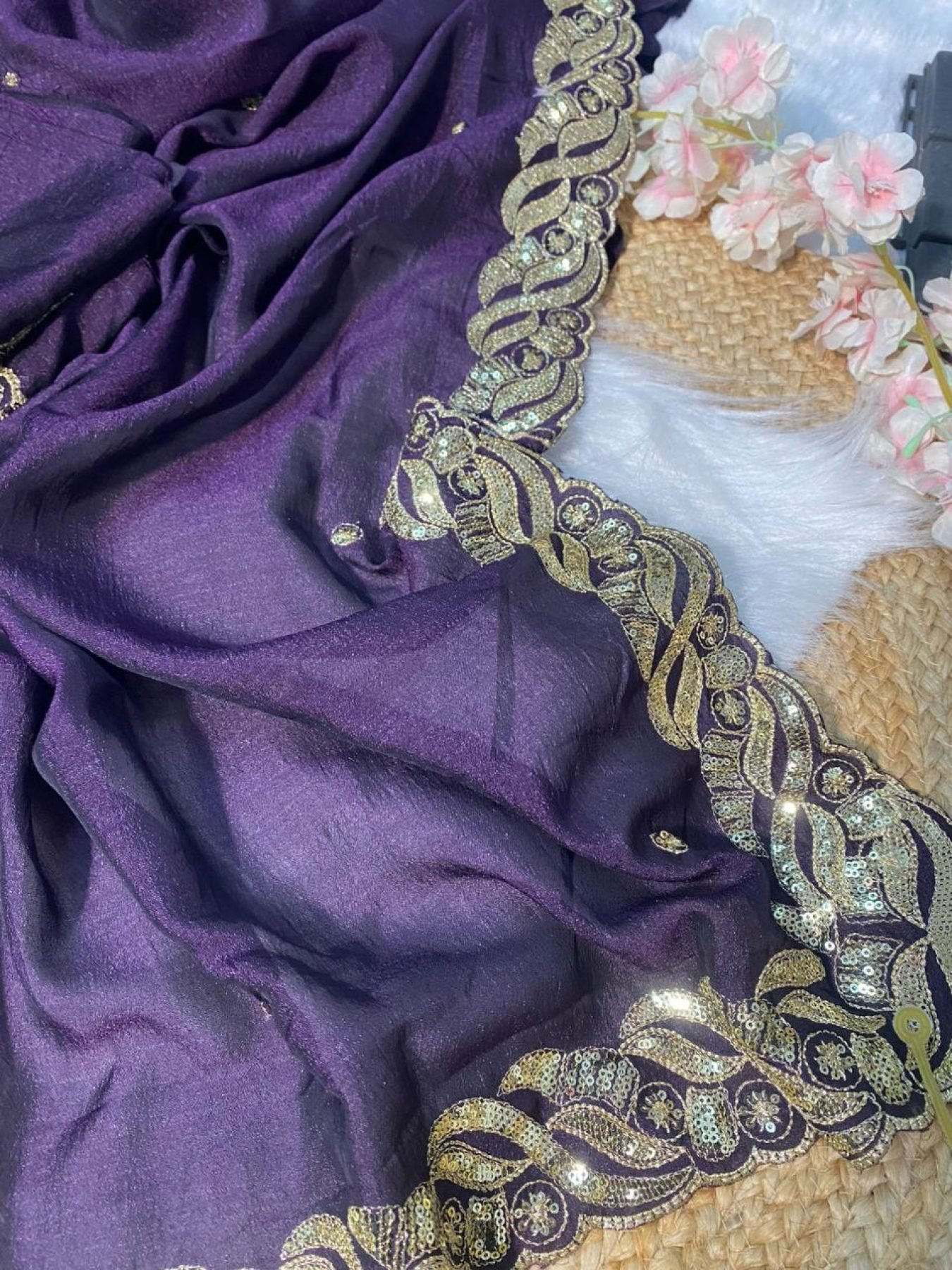 Royal Purple Silk Saree with Sequin Zari & Cutwork Wedding Ready Elegance