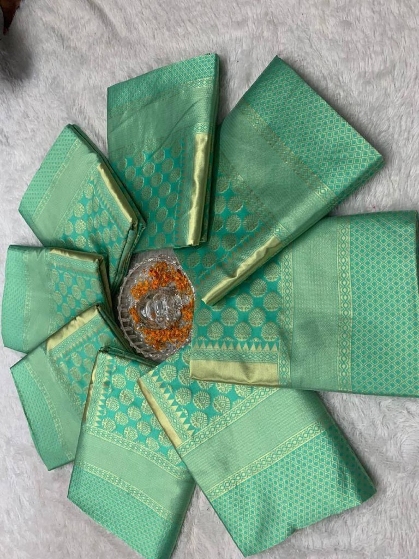Sea Green Lichi Silk Banarasi Saree