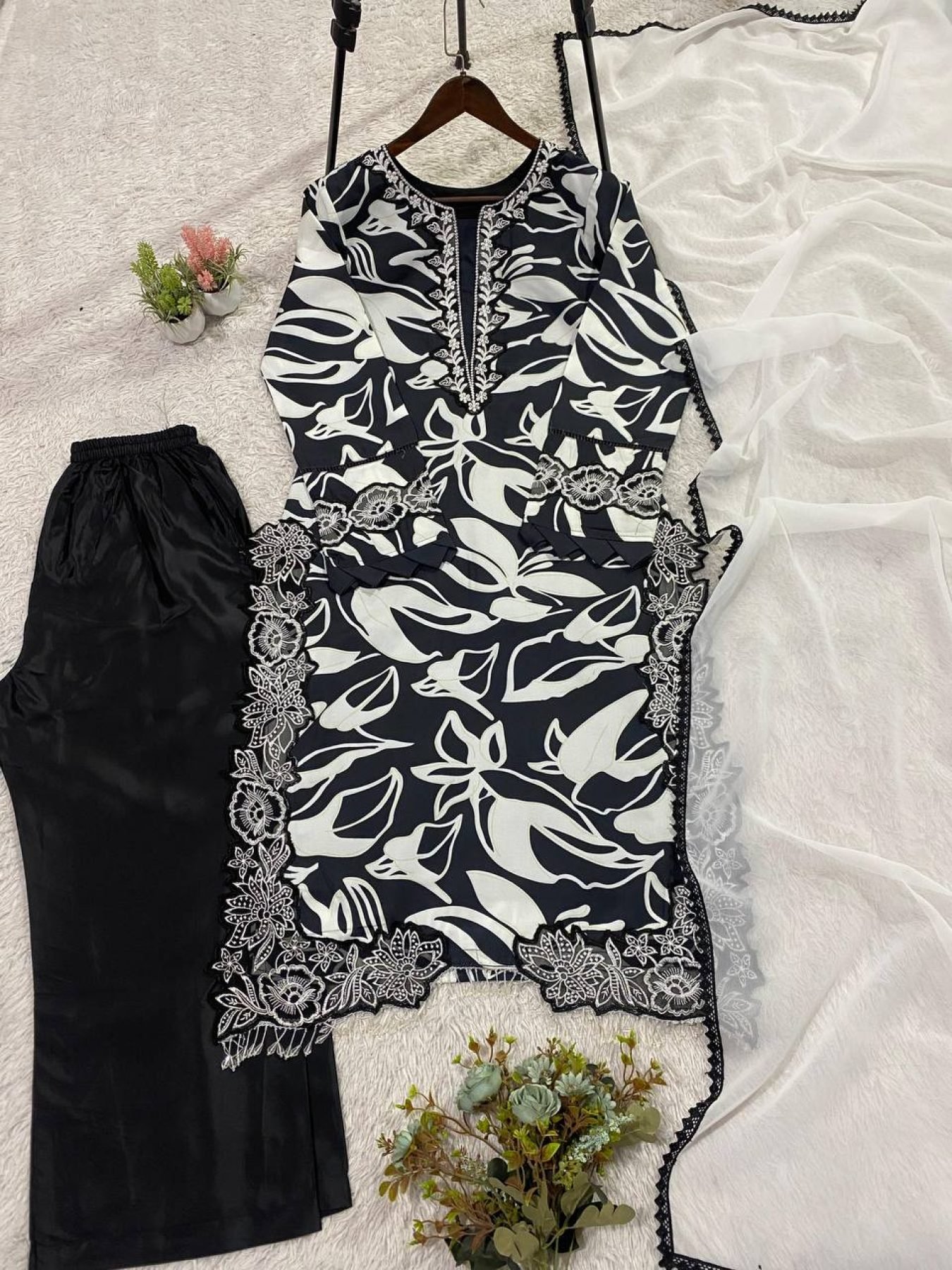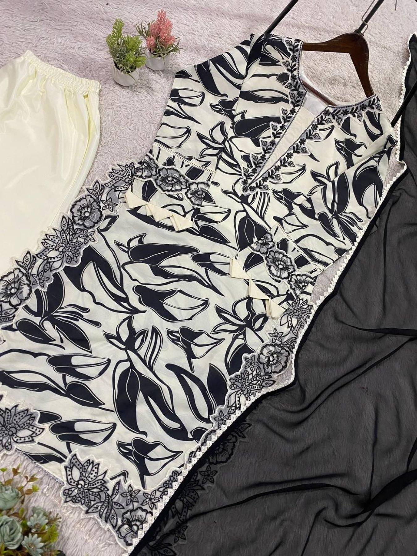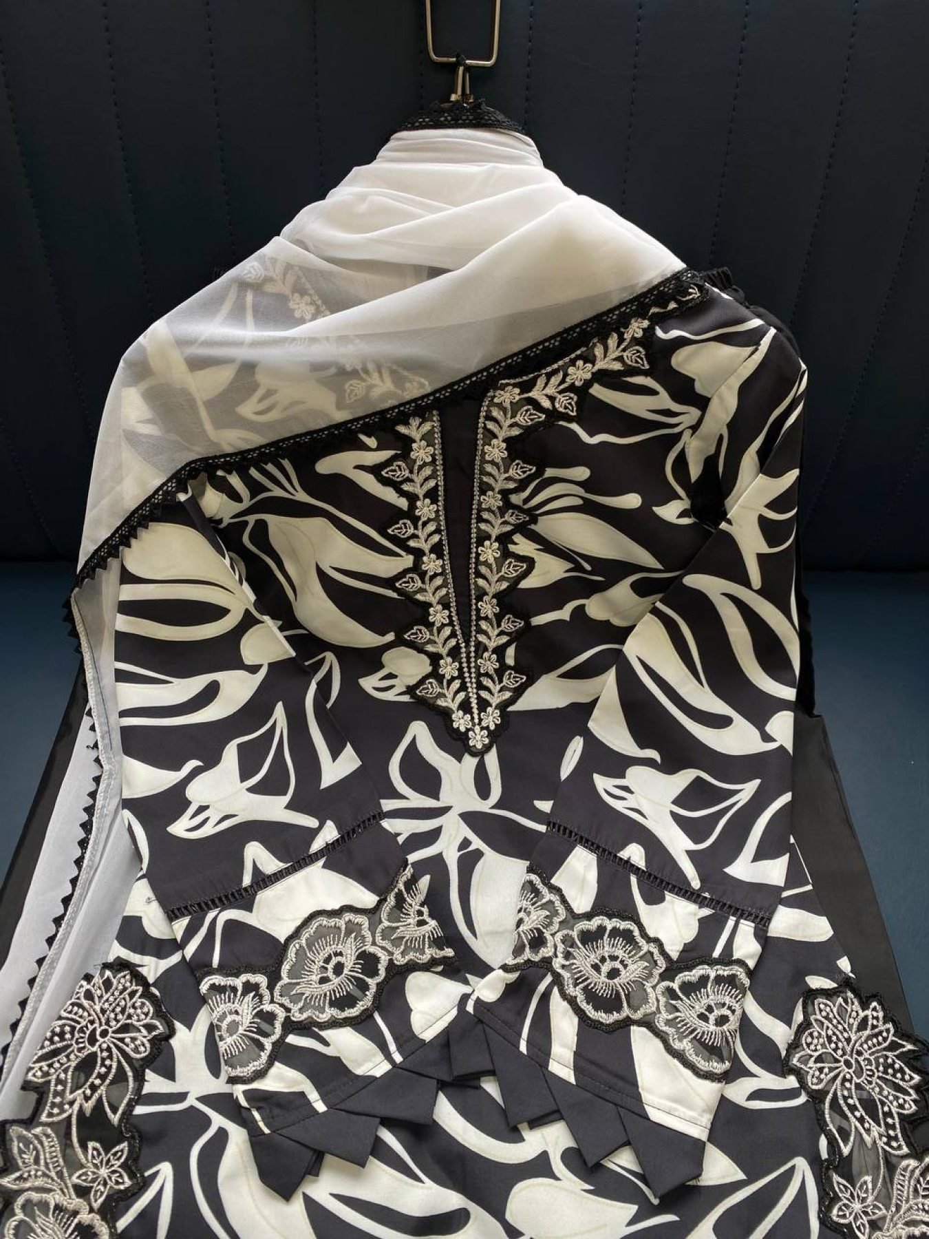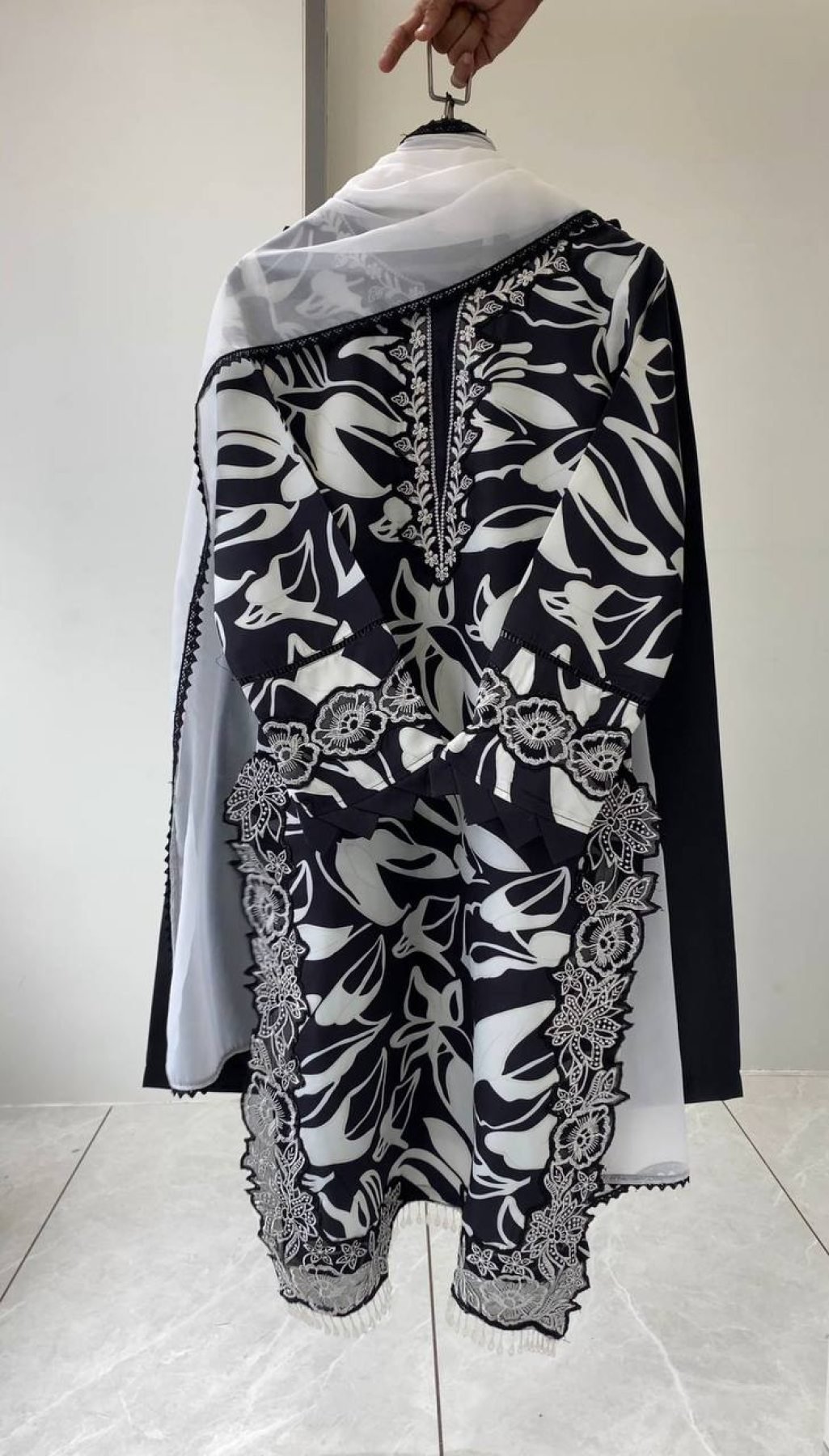 simplicity Printed Muslin Pakistani Style Suit Set With Gorgette Lace Duptta