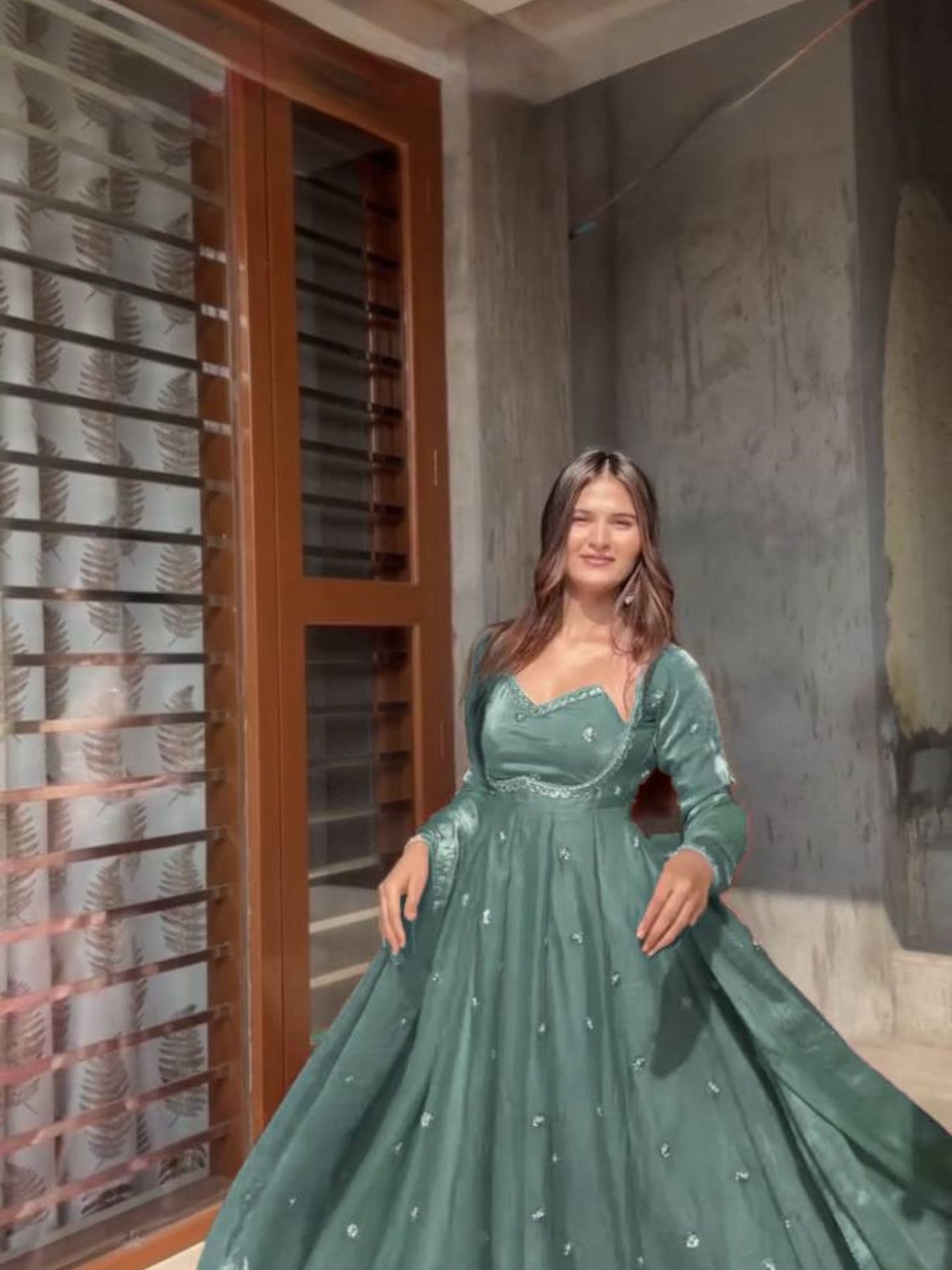 Step into luxury with this beautifully crafted Fendy Silk ready-made suit featuring intricate sequin embroidery and elegant full sleeves.