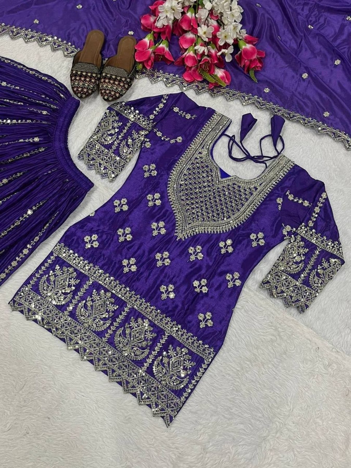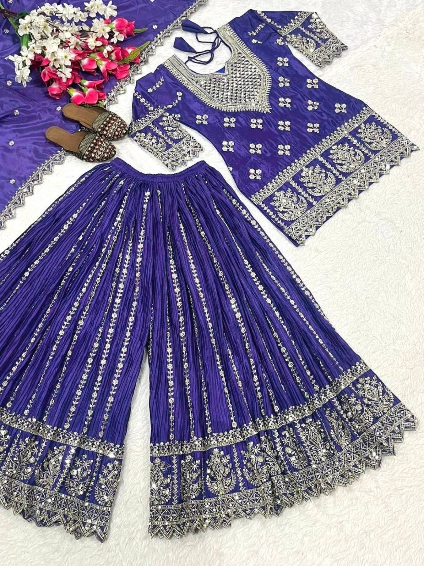 Sleek Purple Chinon Silk Sharara Suit with Sequins Work for Festive Wear