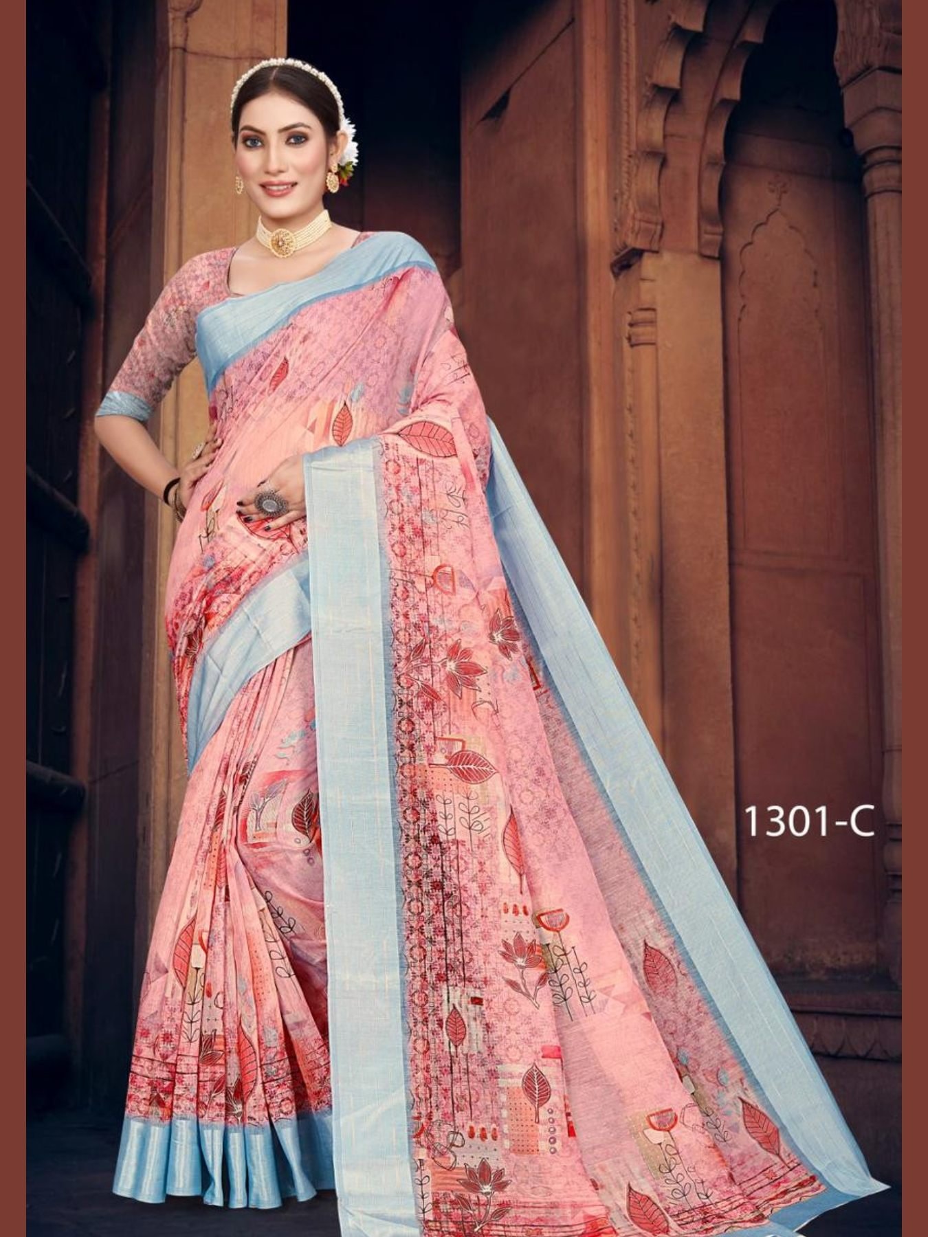 Soft Cotton linen print Saree In Wholsale Rate