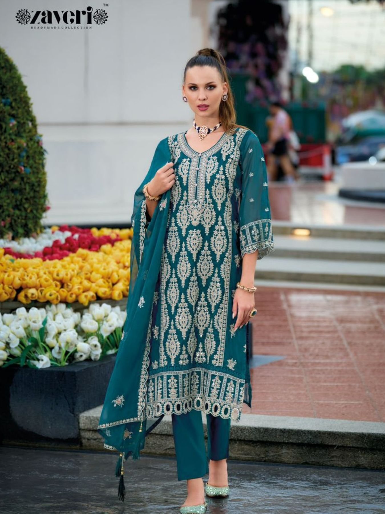 Soft Organza Embroidered Suit Set with Diamond Work Silk Bottom Wholesale Ready