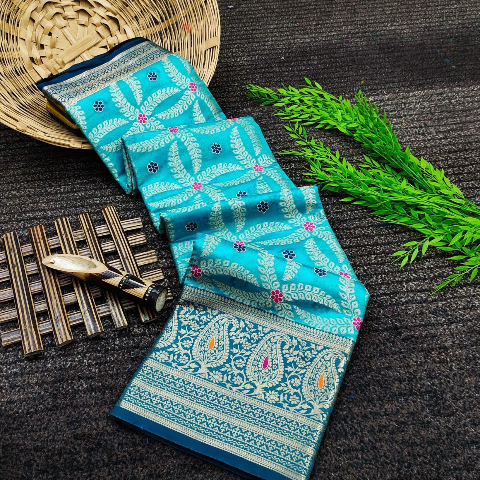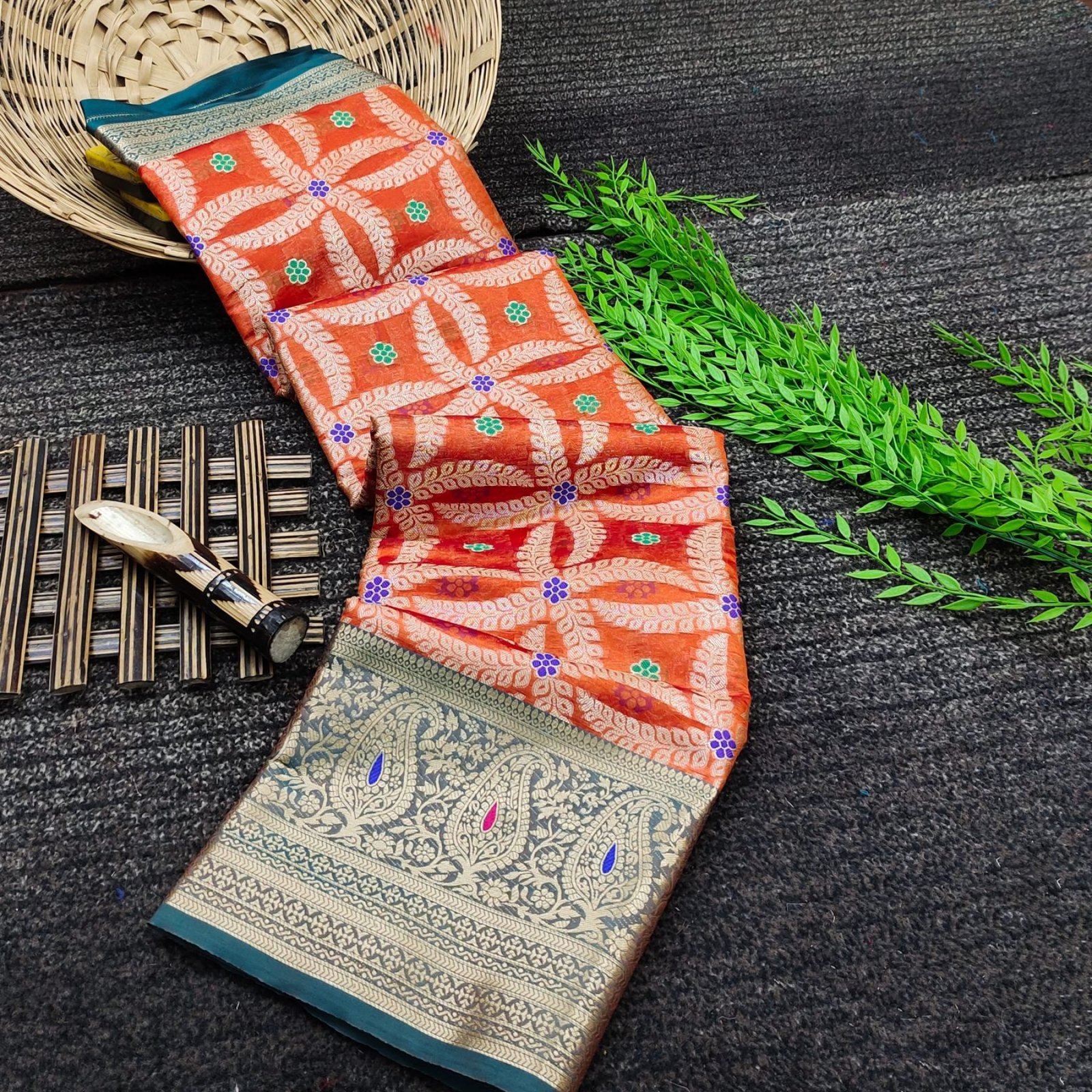 Soft Organza silk With Meenakari Weaving pallu Saree
