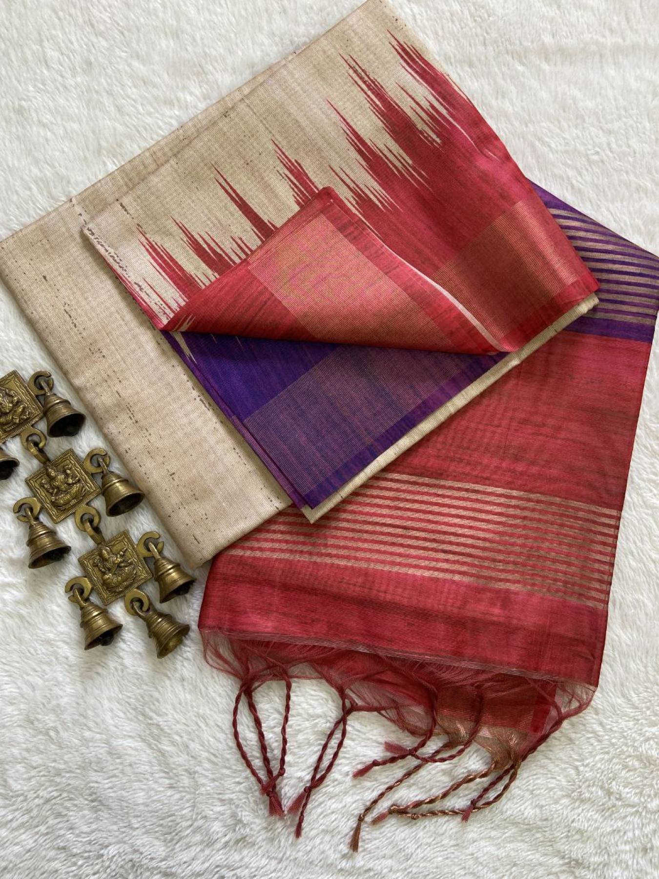Soft Tussar Silk Saree with Attractive Border and Tassel Finish at Wholesale Rates