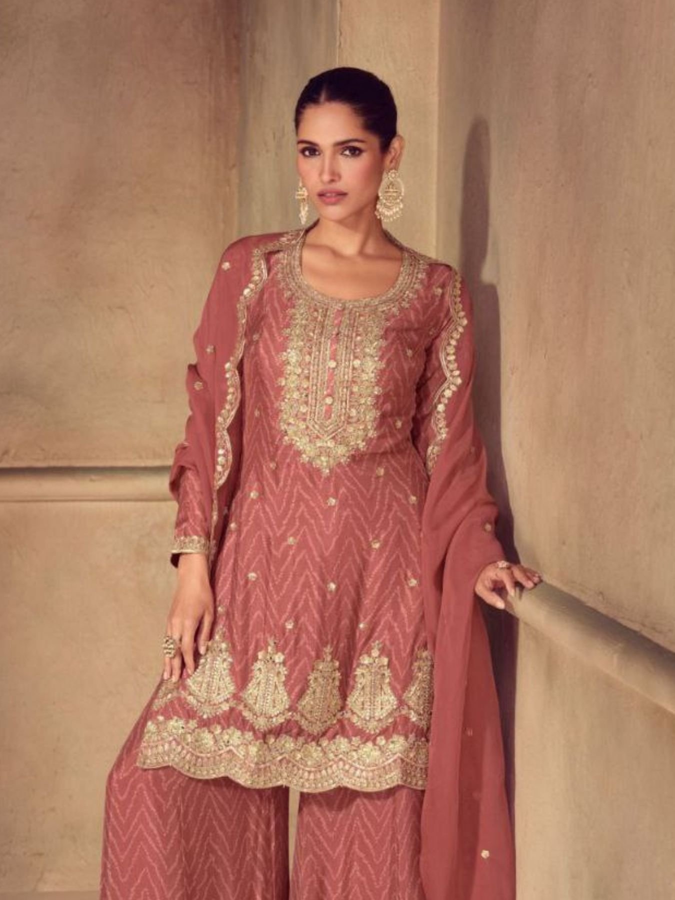 Sonika By Gulkayra Rich Rust Chinon Palazzo Suit For Wedding Wear