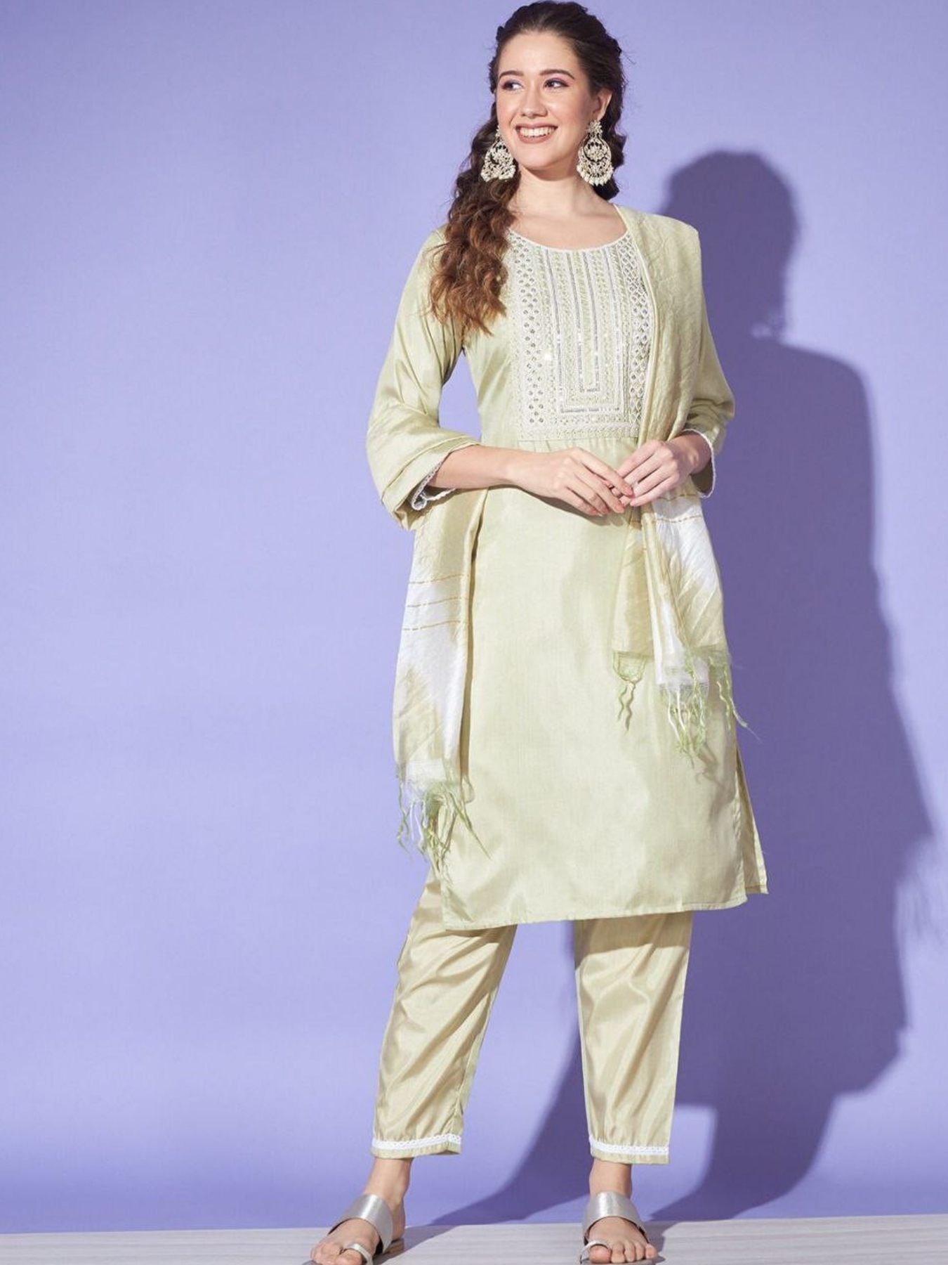 South Silk With Embroiderd Work Kurti Pant With Dupatta